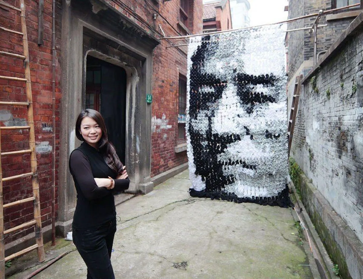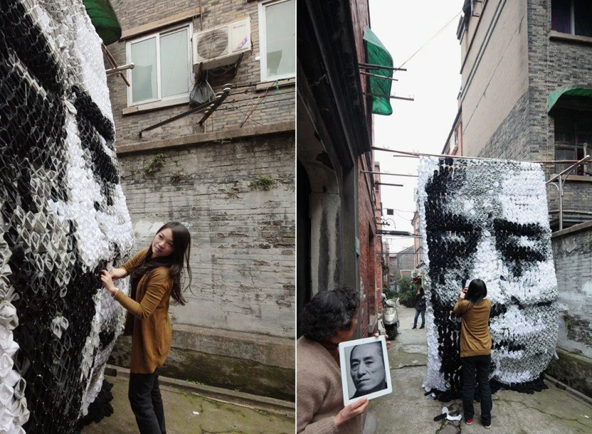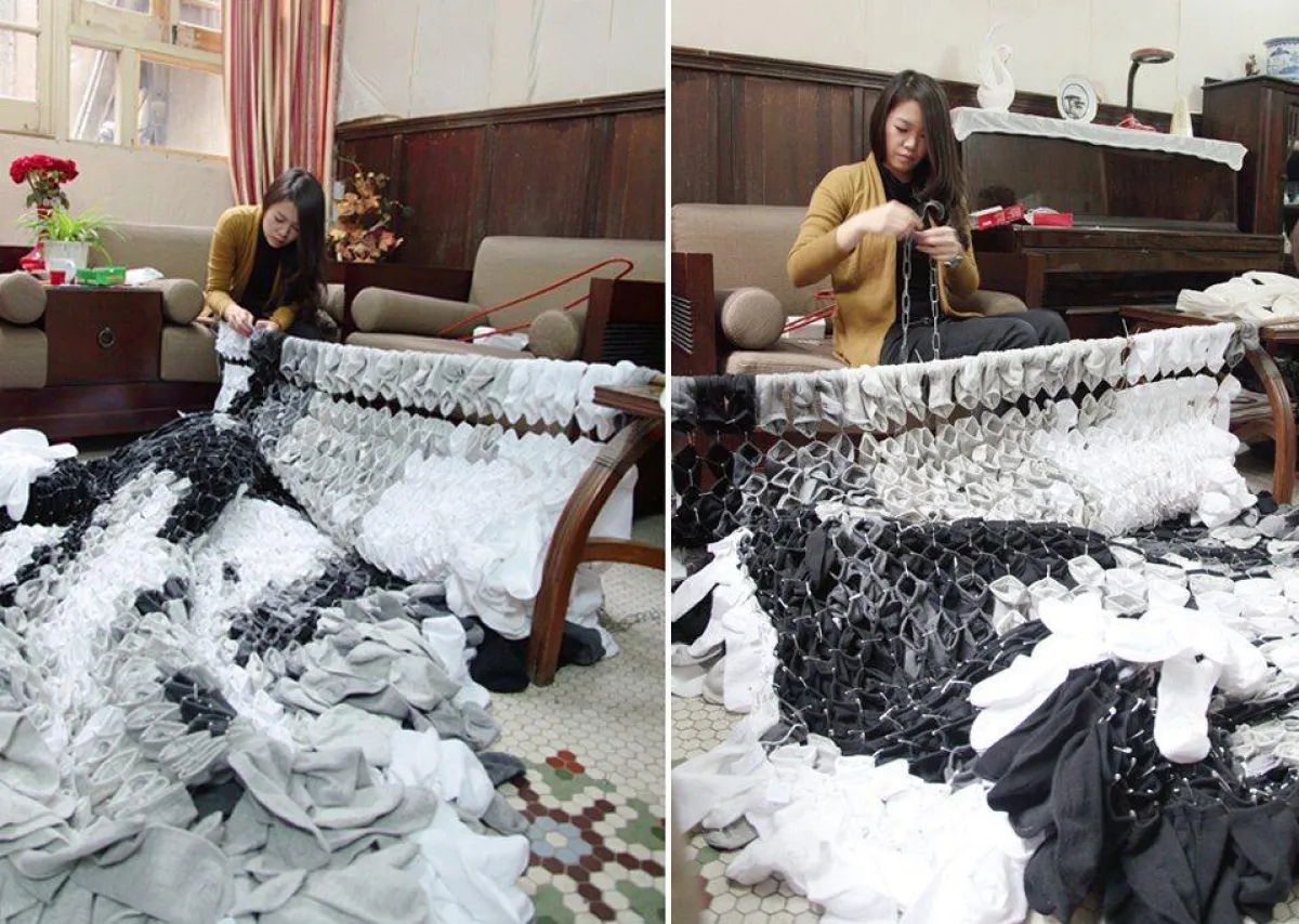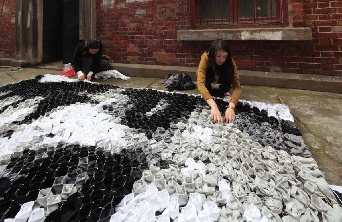 الكثير من فناني الرسم يستخدمون ألوان التلوين لرسم لوحاتهم ولكن في حادثة مميزة وفريدة قامت الفنانة هونغ يي باستخدام 750 زوجًا من الجوارب لتكوين لوحة لمخرج الأفلام الصيني زانغ ييمو، حيث توصلت لهذه الفكرة بعدما لاحظت أنّ ربات المنازل يقمن بتعليق الغسيل على أغصان البامبو. حيث إنها قامت برسم مخرج الأفلام الصيني زانغ ييمو الذي رسمته الفنانة لتأتي الفكرة للفنانة الشابة بتكوين لوحة من شيء يعدّ عاديًّا وعامًا في حياتنا اليومية، واستمر تكوين هذه اللوحة أكثر من ثلاثة أسابيع، واستخدمت فيها جوارب سوداء وبيضاء ورمادية.