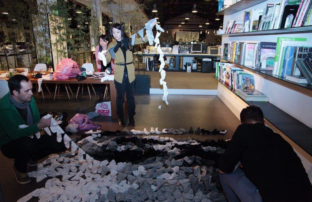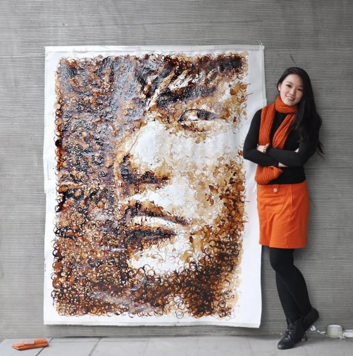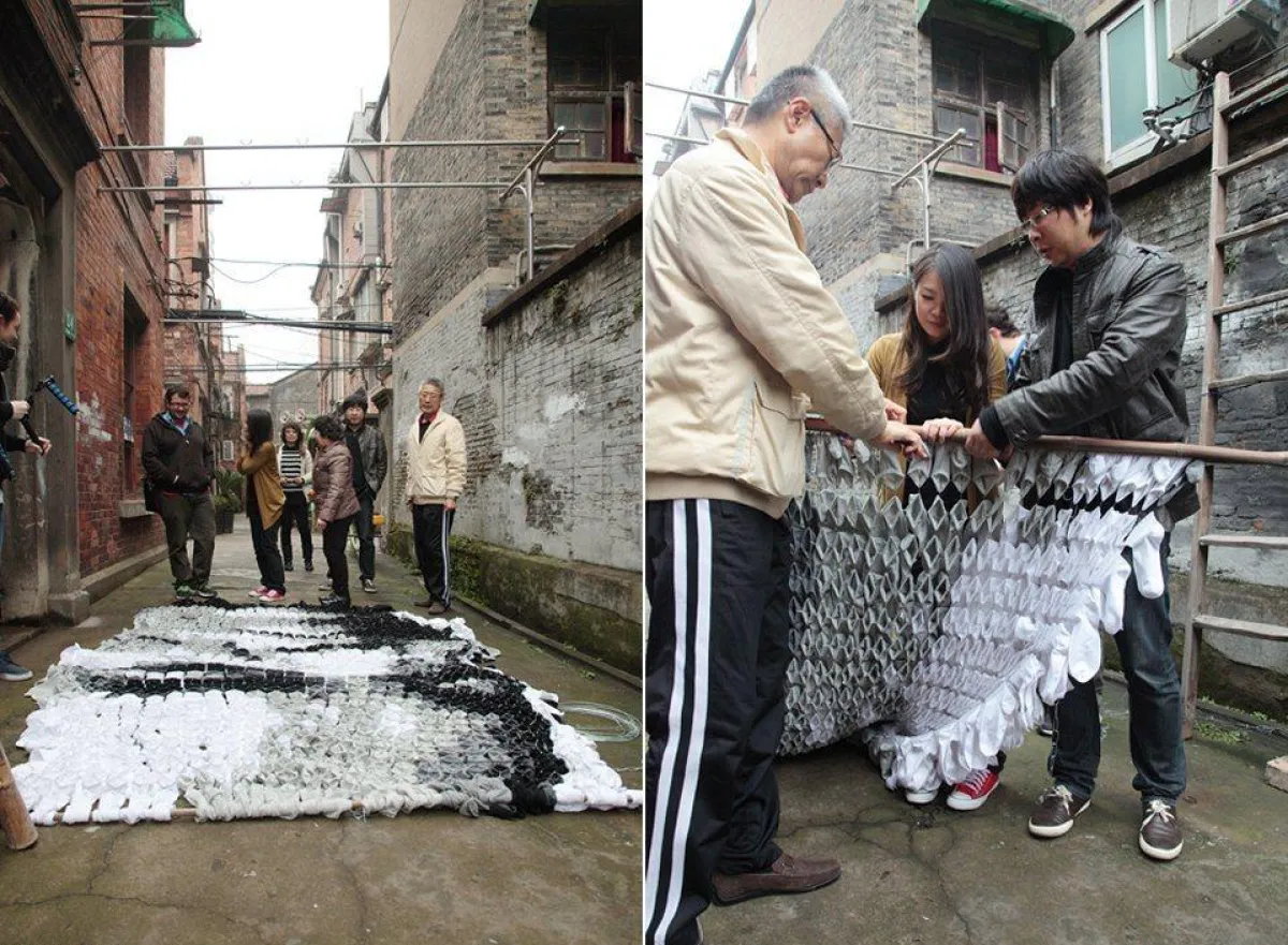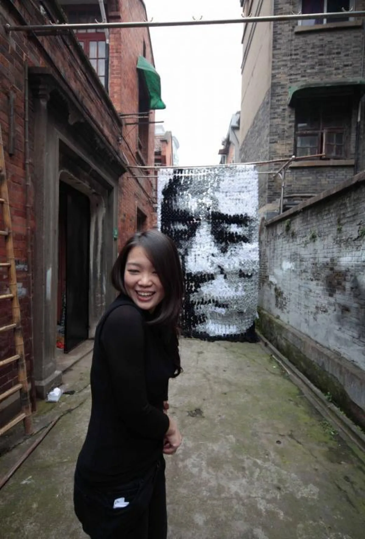 الكثير من فناني الرسم يستخدمون ألوان التلوين لرسم لوحاتهم ولكن في حادثة مميزة وفريدة قامت الفنانة هونغ يي باستخدام 750 زوجًا من الجوارب لتكوين لوحة لمخرج الأفلام الصيني زانغ ييمو، حيث توصلت لهذه الفكرة بعدما لاحظت أنّ ربات المنازل يقمن بتعليق الغسيل على أغصان البامبو. حيث إنها قامت برسم مخرج الأفلام الصيني زانغ ييمو الذي رسمته الفنانة لتأتي الفكرة للفنانة الشابة بتكوين لوحة من شيء يعدّ عاديًّا وعامًا في حياتنا اليومية، واستمر تكوين هذه اللوحة أكثر من ثلاثة أسابيع، واستخدمت فيها جوارب سوداء وبيضاء ورمادية.