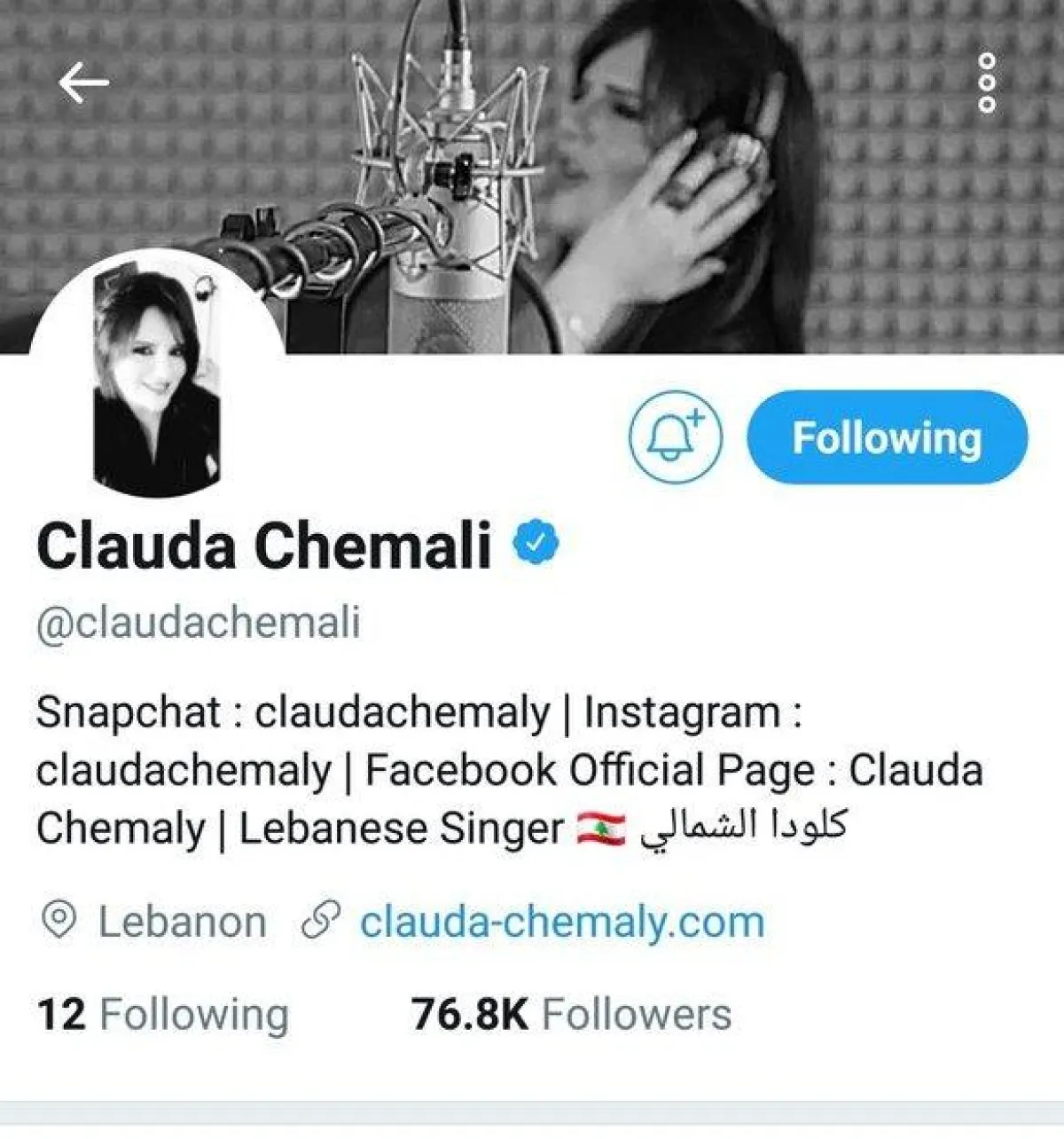 -الفنانة كلودا شمالي كانت من أكثر الخاسرين على تويتر، إذ انخفض عدد متابعيها من ٢٧٨ ألف إلى ٧٣ ألف متابع.