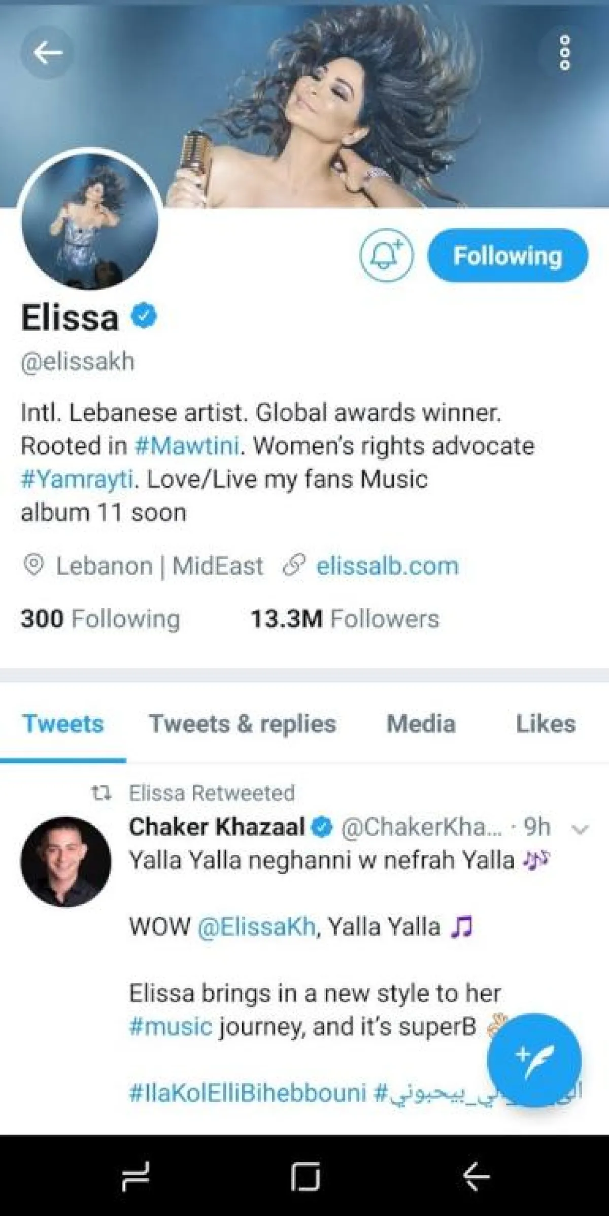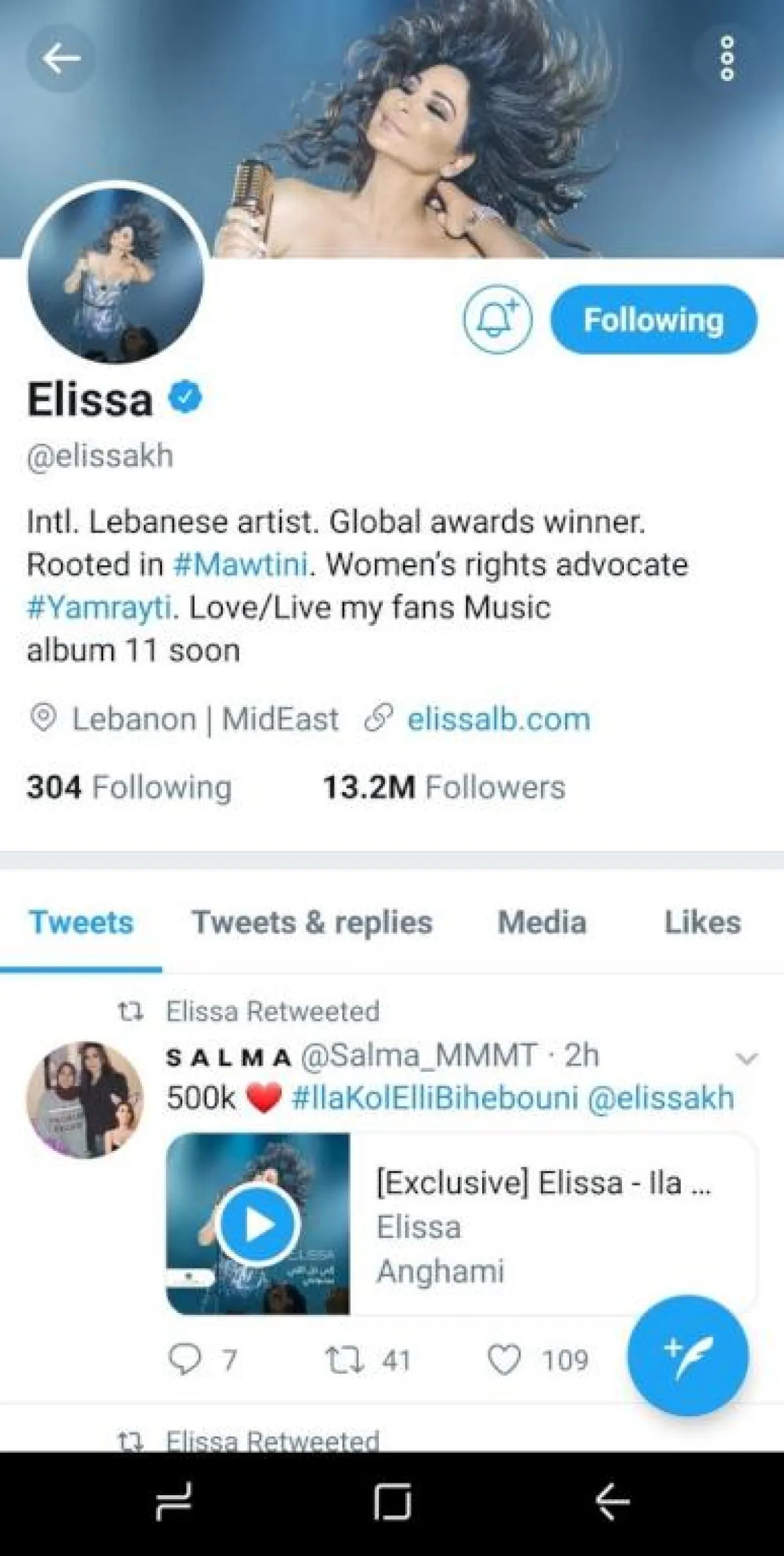 -إليسا خسرت في عملية إلغاء الحسابات الوهمية ما يقارب الـ100 ألف متابع.