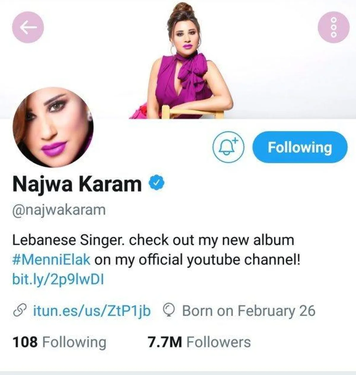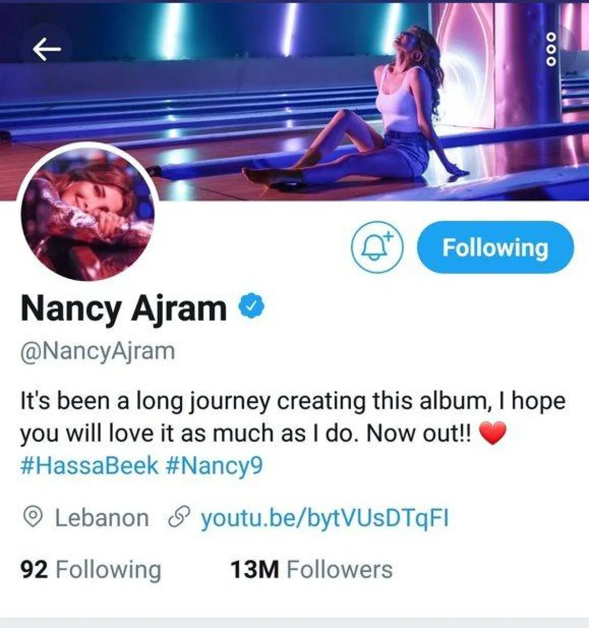 -نانسي عجرم خسرت 200 ألف متابع وهمي وظلّت تحافظ على أعلى نسبة متابعة بين الفنانين.