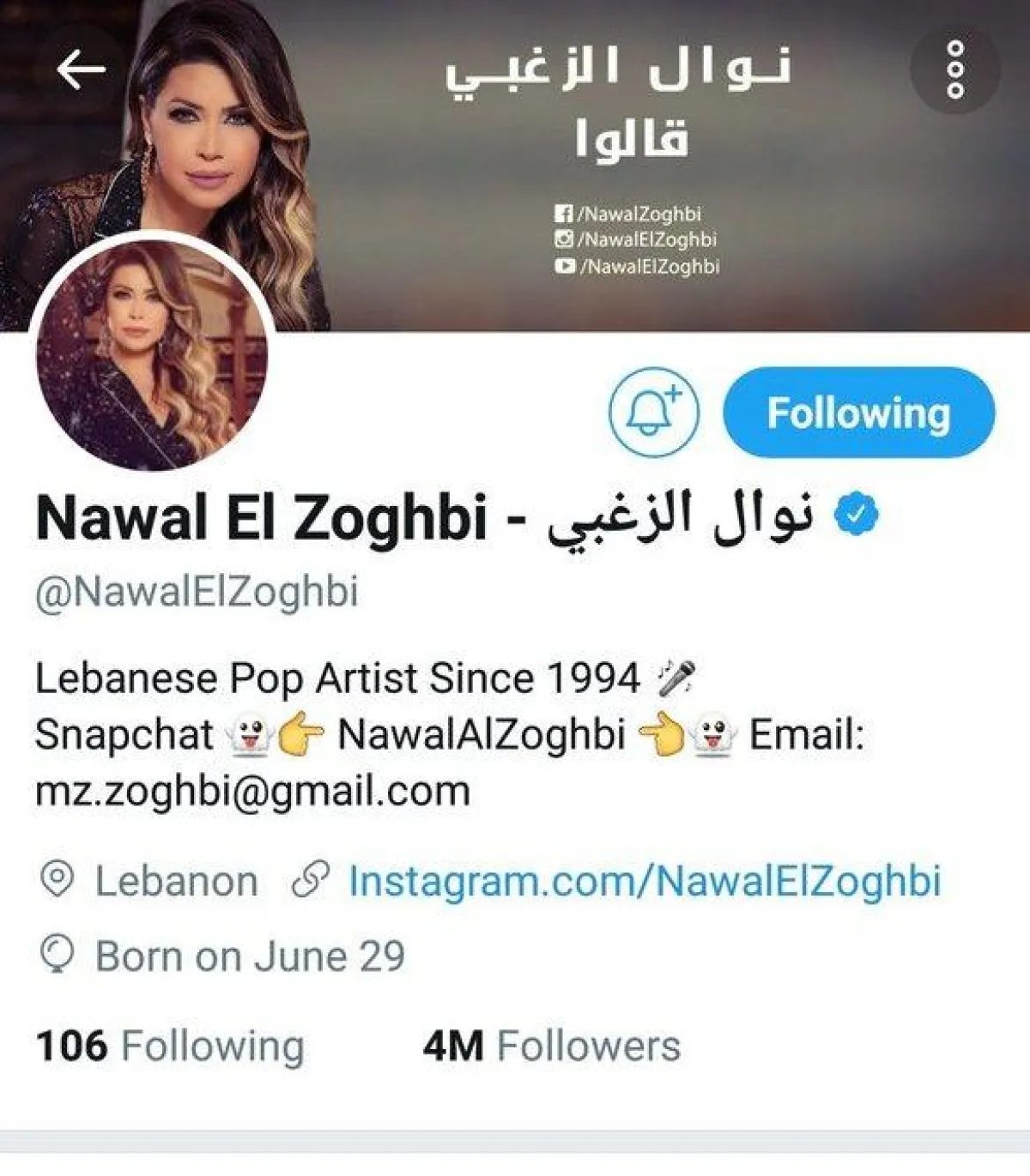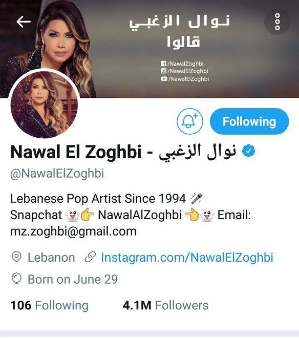 -هيفاء وهبي لم تخسر متابعين وحافظت على نفس العدد قبل وبعد التعديل الطارىء على "تويتر".