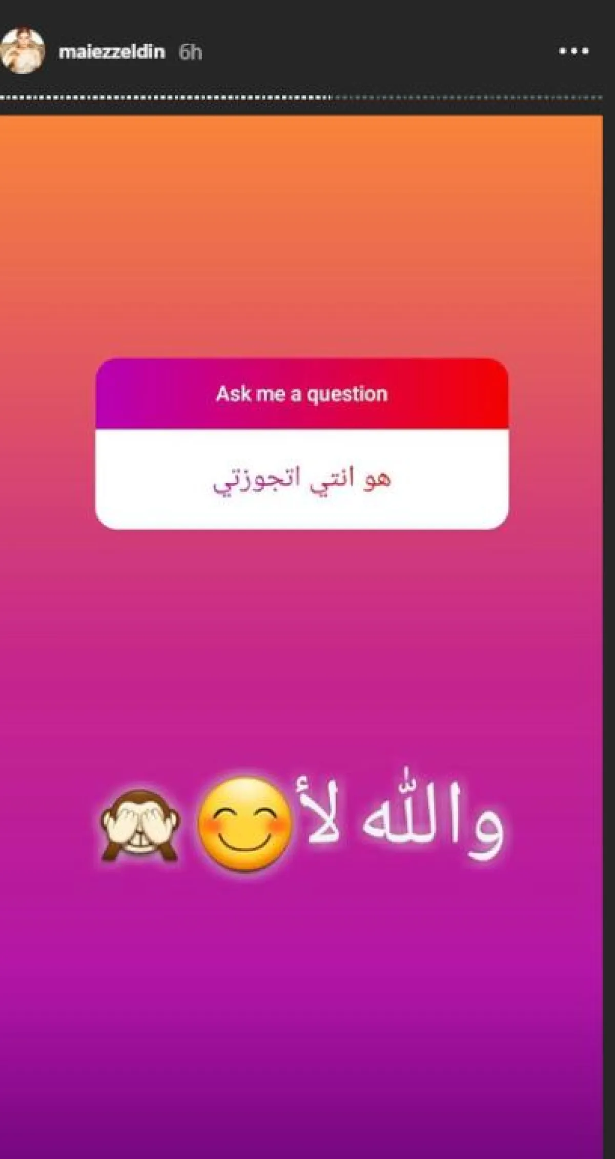 نفت الفنانة مي عز الدين كل الشائعات التي أكدت زواجها سرًّا، ولكنها لم تنفِ الوقوع في الحب، وقالت في حوار مفتوح مع جمهورها عبر تطبيق انستقرام، إنها "لم تتزوج" ولا تعيش قصة حب "حاليًّا"، كما وعدت جمهورها بالسعي للتعاون مجددًا مع المطرب تامر حسني في فيلم سينمائي جديد.