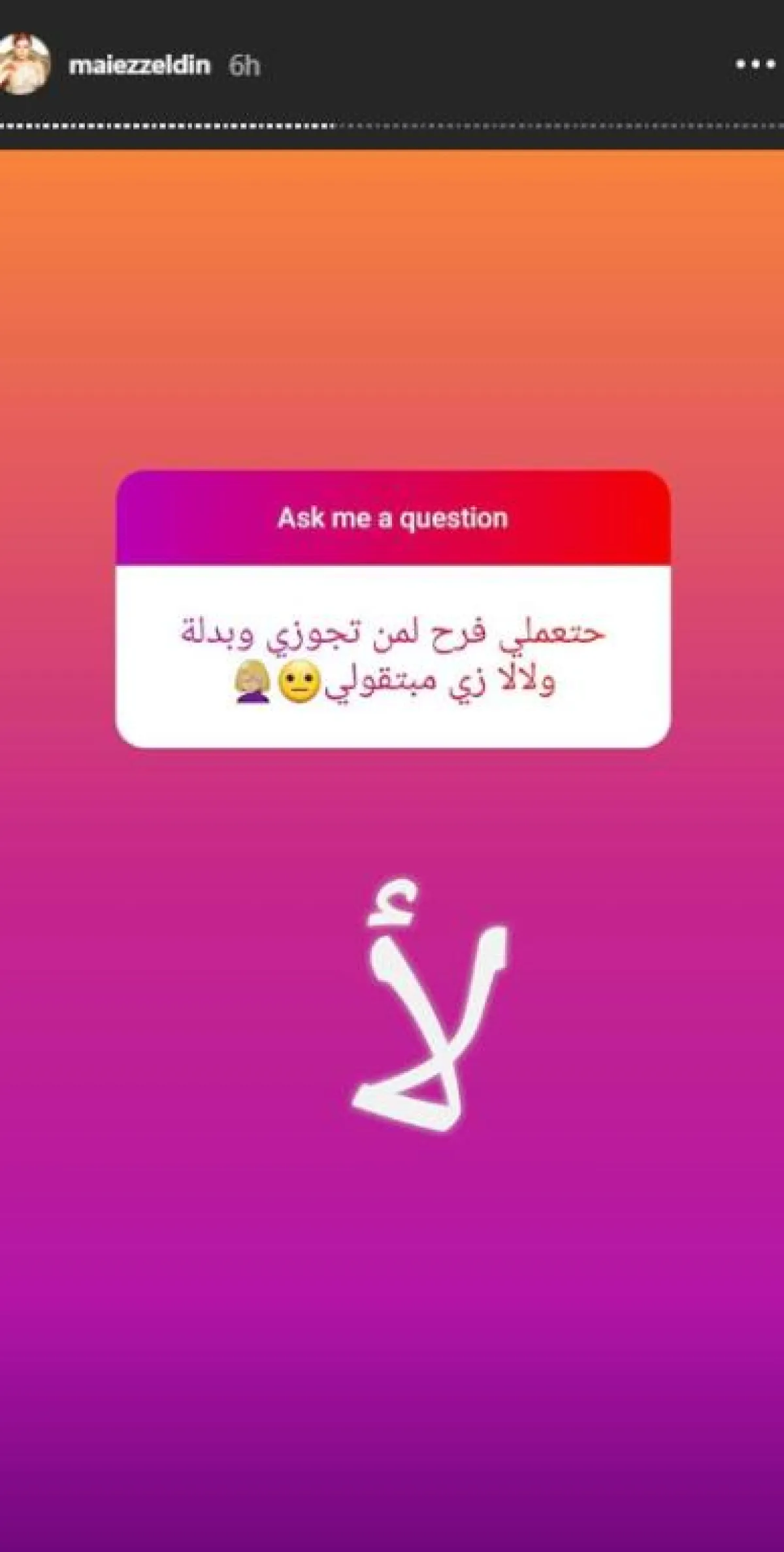 مي ردت سريعًا على سؤال حول زواجها سرًّا مؤخرًا وقالت: "والله لأ"، بينما تمهلت قبل الإجابة عن سؤال يتعلق بحياتها العاطفية، وهل تعيش قصة حب حاليًّا، وأجابت" حاليًّا لأ" في إشارة لوجود قصة حب سابقة، وأكدت أنها لن ترتدي الفستان الأبيض وتقيم حفل زفاف إذا تزوجت، وأضافت ضاحكة أنها تتمنى الارتباط بثلاثة رجال، أحدهم "الله يرحمه".