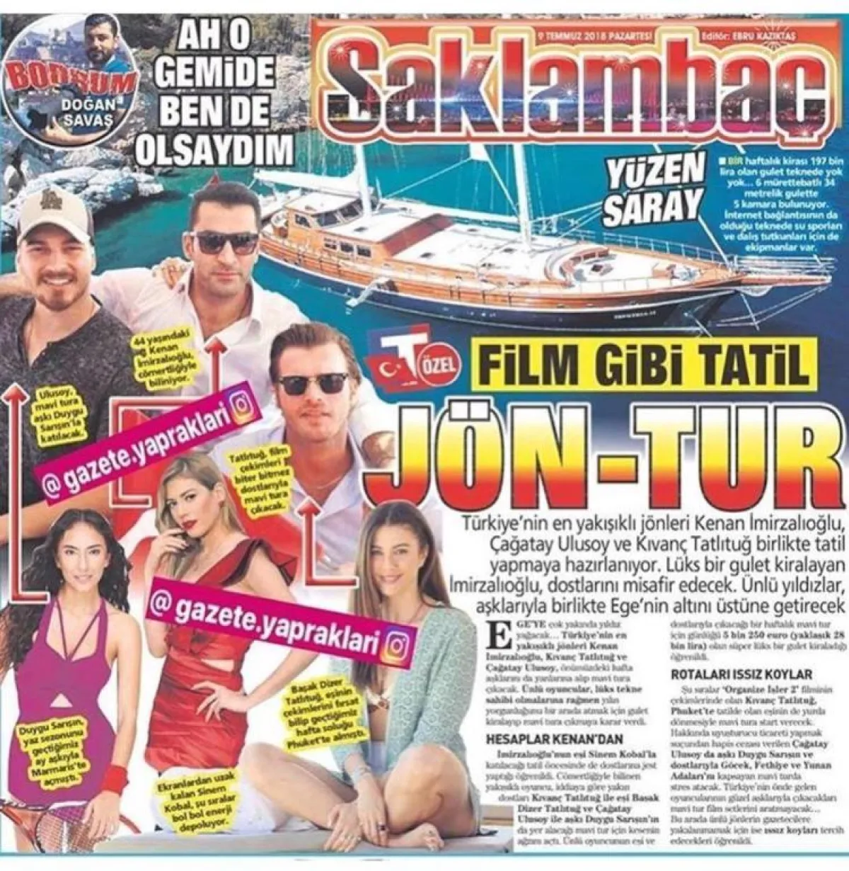 وينوي كينان أميرزالي أوغلو الإبحار من ميناء مهجور حتى لا يدع للصحافيين فرصة مشاهدتهم وتصويرهم، حيث يعاني نجوم تركيا من مطاردة مصوري الباباراتزي لهم حتى في إجازاتهم العائلية الخاصة.