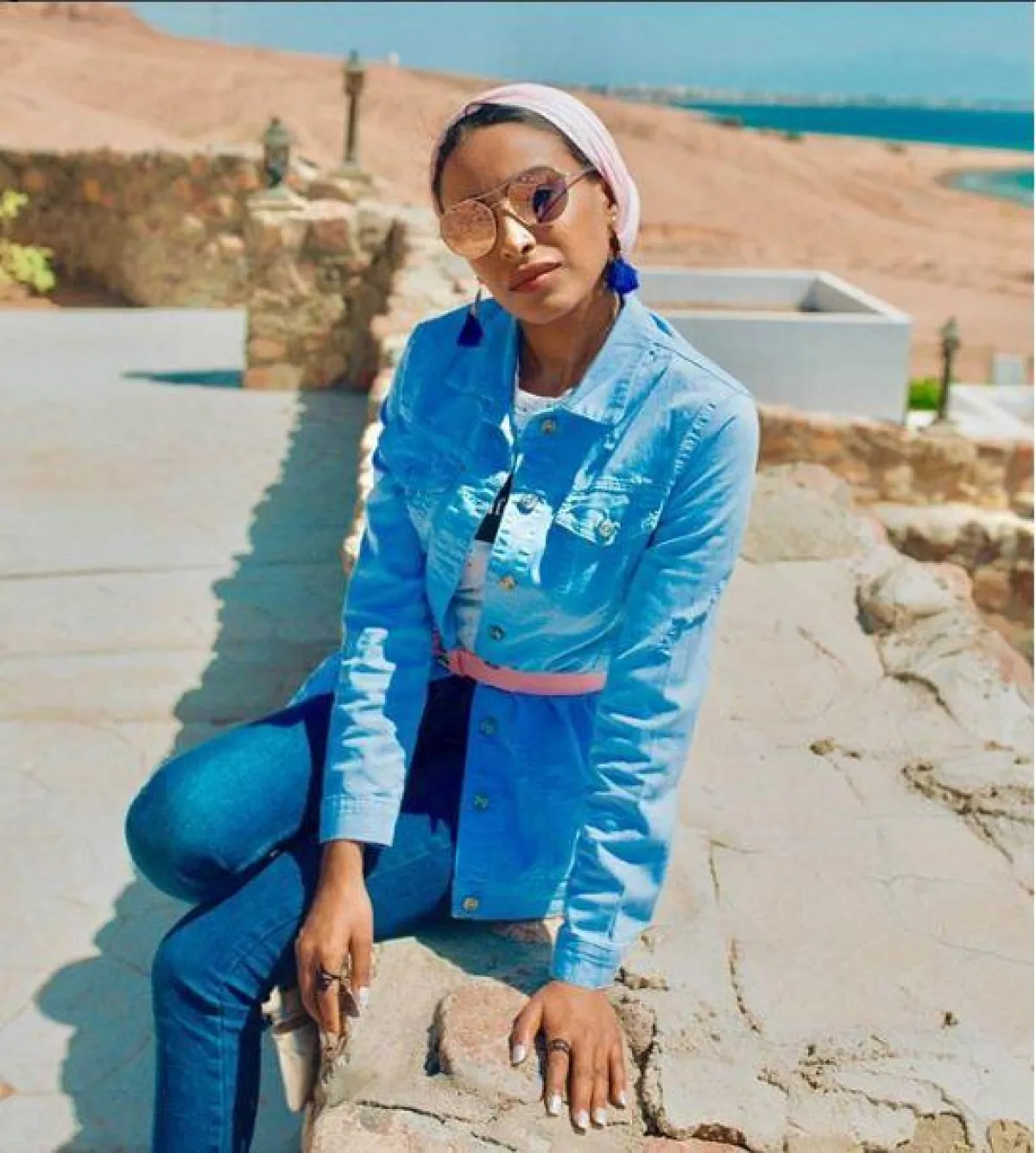 يمكن للجينز أن يكون خيارك على الشاطئ، لا سيما في آخر اليوم، أو عند المساء، على طريقة الفاشينيستا لمياء بدر، بالإطلالة الدينم، مع حزام الخصر الرفيع الفوشي.