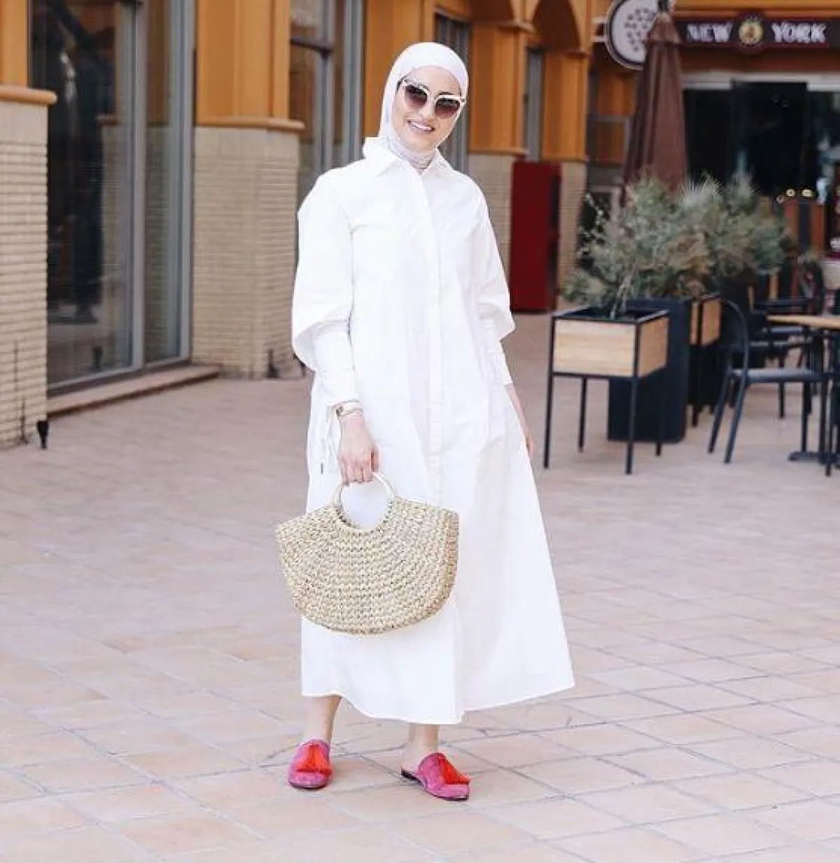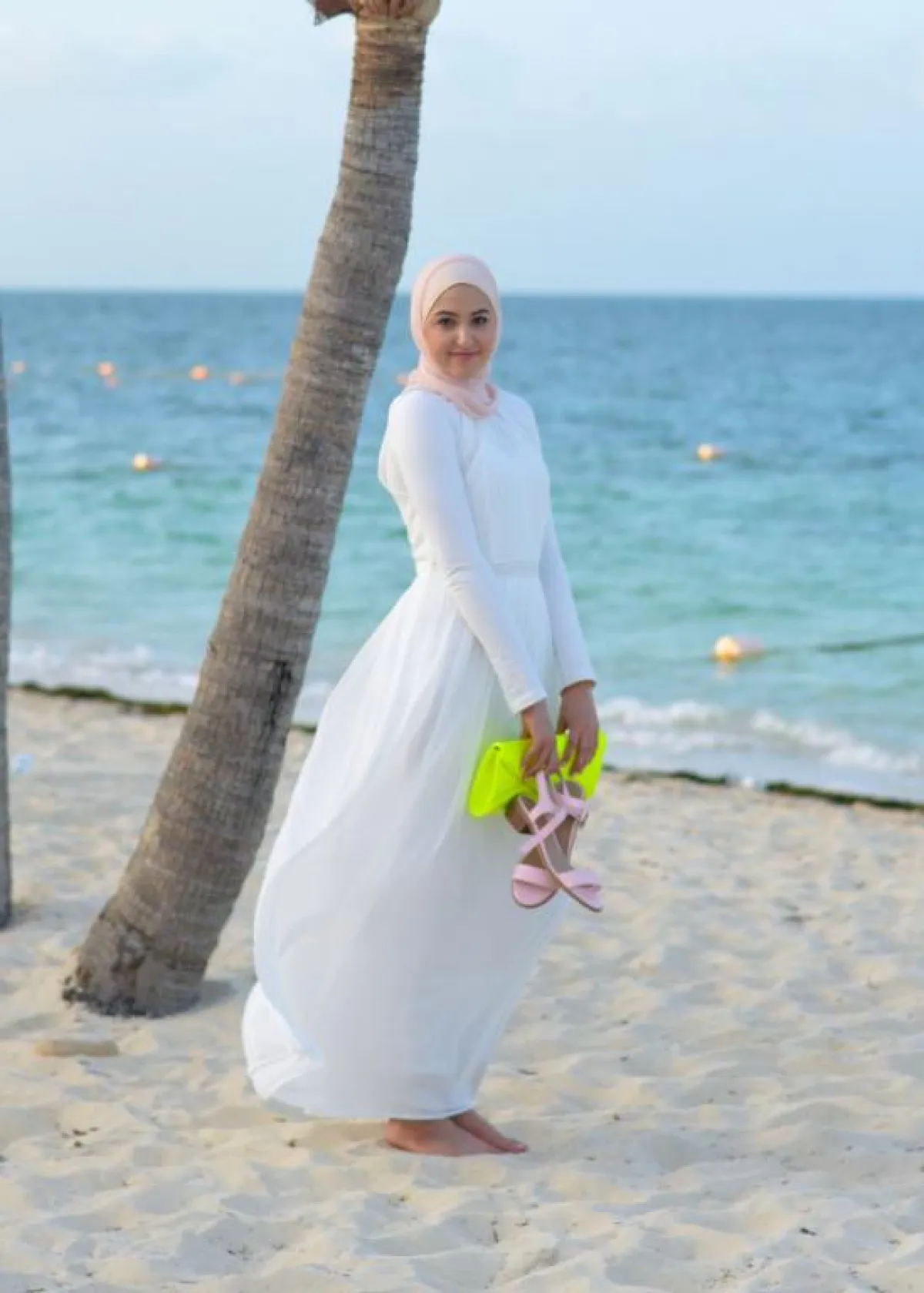بفستان أبيض بسيط، ظهرت الفاشنيستا لينا الأسعد على البحر، واختارت مع الفستان حجابها المفضل باللون الروز، وجاء الحذاء باللون نفسه ، وتعتبر الفساتين الصيفية من الخيارات المميزة التي يمكن ارتداؤها على الشاطئ.