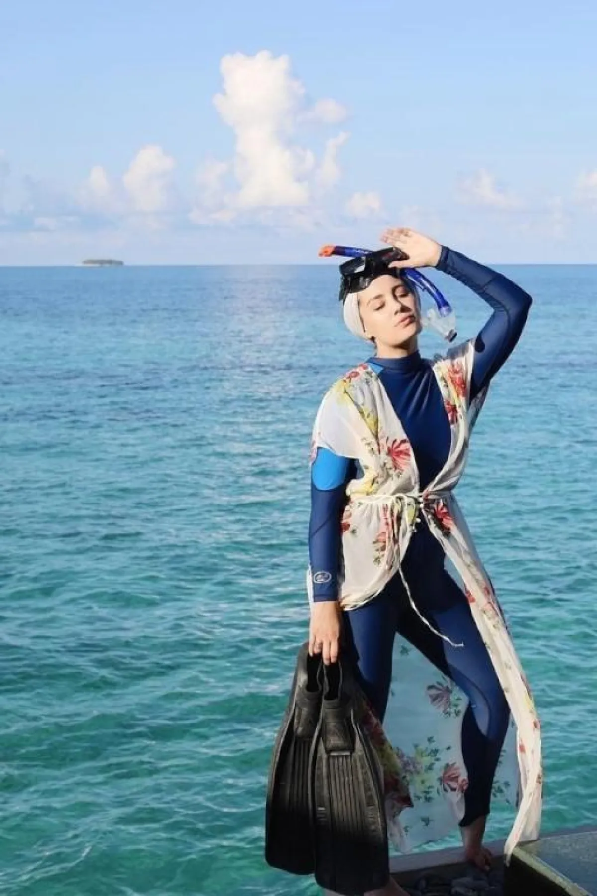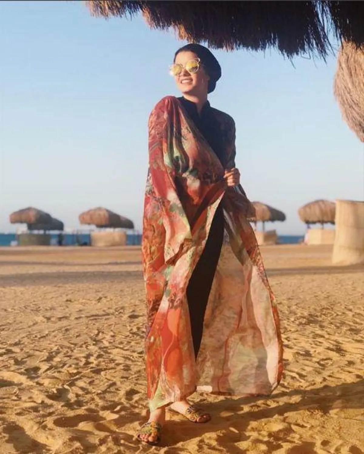 أما إذا كنتِ تعشقين السباحة، فاعتمدي الجمبسوت بأقمشة مقاومة للماء، وهي نفس الخامة المصنوعة منها ملابس البحر العادية، ونسقي معه كيمونو طويلًا مطبّعًا بالورود، أو بالرسومات الهندسية، واختاريه مع حزام الخصر، كـ الفاشينيستا آسيا، أو مفتوحًا كمدونة الموضة المصرية إيمان رشاد. وأفضل حجاب مع هذه الإطلالة هي التوربان لتكون عملية أكثر مع نزول البحر.