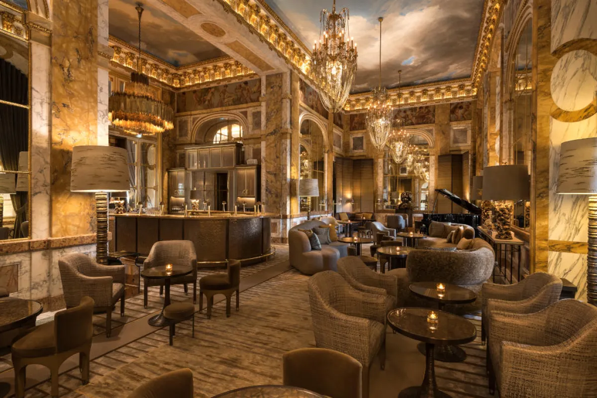 المصمِّم الأرميني شاهان مينسيان أشرف على أعمال تجديد "بار السفراء" في الفندق، حيث السقف يشيع انطباعًا للوهلة الأولى بأنَّه مفتوح على السماء! وتتدلَّى منه ثريات رائعة مزدانة بسلاسل مذهَّبة، وتضمُّ في داخلها حبيبات من الكريستال. وقد غُطِّيت جدران الصالون بالرخام المموَّج، وتخلَّلته أعمدة من الخشب المنحوت والمذهَّب. أمَّا الكنبات والكراسي فيه فمشغولة من أقمشة فاخرة، ولا سيَّما المخمل المحفور. وتتوسَّطها طاولات دائرية الشكل أُنجز سطحها من العقيق وقوائمها من البرونز.
