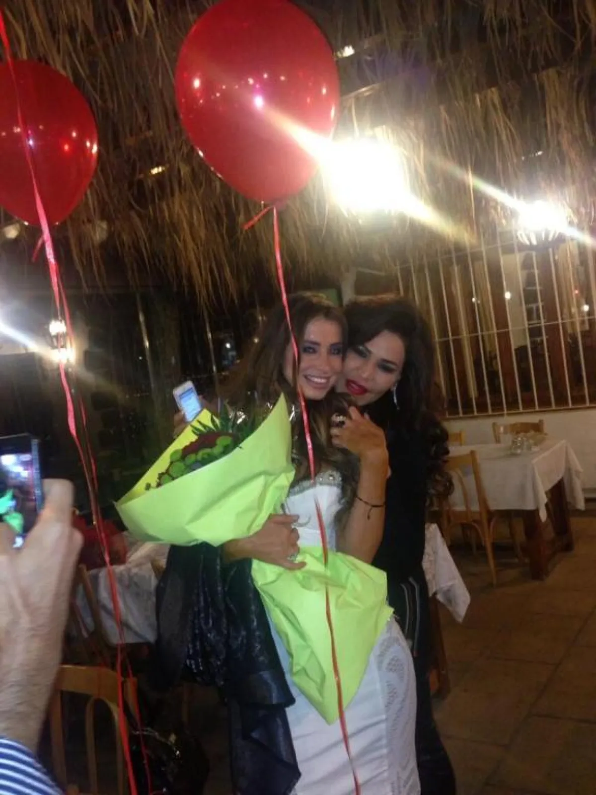 أحلام خلال العشاء لم تكفّ عن الردّ على سيل الاتصالات الهاتفية التي وردتها، وكان أحدها حول تسلّمها جائزة فخرية في حفل "الموريكس دور" يوم الأحد المقبل، وكانت تستفسر عن قائمة الأسماء المكرّمة إلى جانبها، في حين كان المايسترو إيلي العليا يزوّدها بالتفاصيل ويدندن معها بعض الأغنيات حيث كانت أحلام تغني بعض المقاطع مستمتعة بأجواء الجلسة والمكان الجميل.