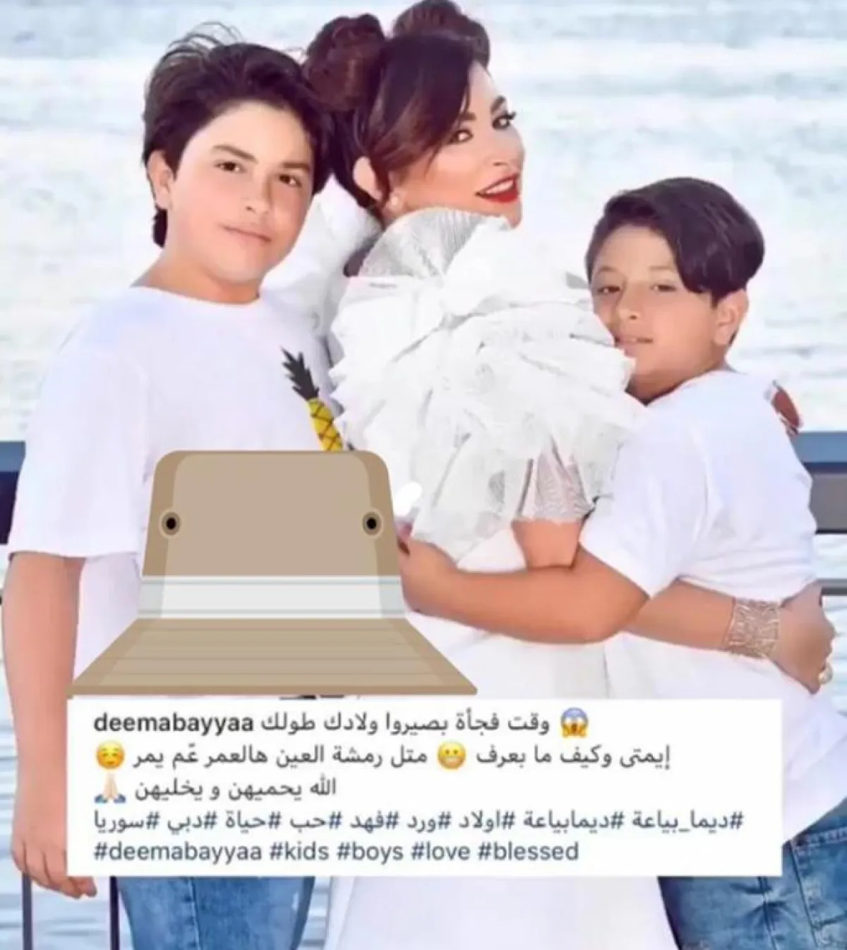 نشرت الفنانة ديمة بياعة صورة لها وهي تحتضن ولديها ورد وفهد، بديا فيها وهما بمثل طولها.