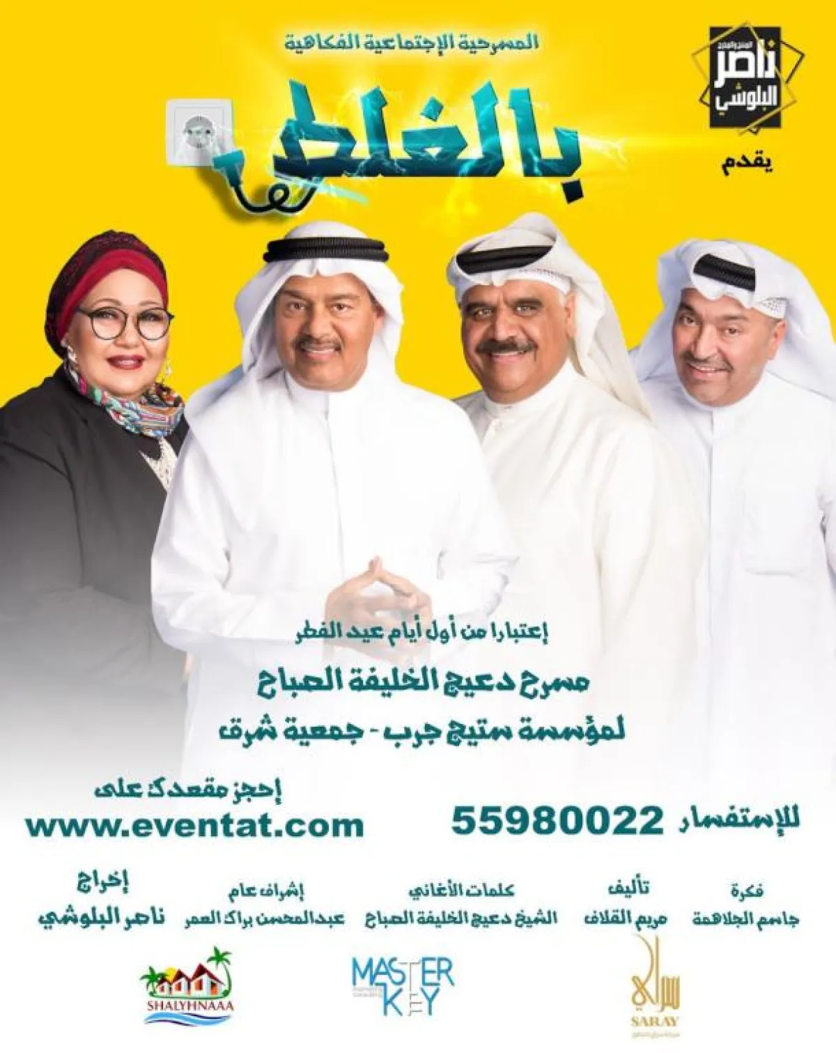 يذكر أن مسرحية " «بالغلط» بدأت مع عطلة عيد الفطر على مسرح الشيخ دعيج الخليفة. والمسرحية فكرة مريم القلاف، وإخراج ناصر البلوشي، ويتقاسم بطولتها كل من انتصار الشراح وعبدالرحمن العقل ومحمد العجيمي وداود حسين، بجانب عبدالله العتيبي وناصر البلوشي وعبدالمحسن العمر وبدر البلوشي وعبدالله الحمادي وآخرين من إنتاج ستيج جروب .