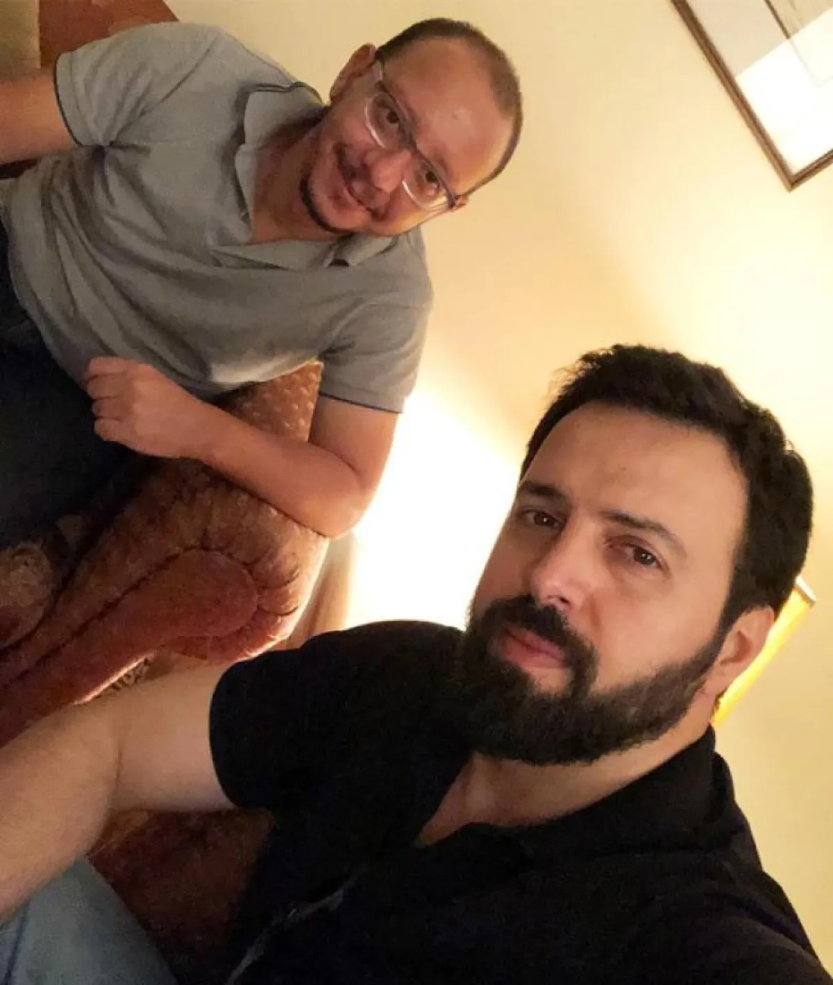 بعد غياب عن الظهور عبر مواقع التواصل الاجتماعي منذ انتهاء شهر رمضان المبارك تقريباً عاد النجم السوري تيم حسن للظهور عبر حسابه على " انستقرام " حيث نشر صورته برفقة صديقه الفنان السوري معن عبد الحق مهنئاً إياه بخطوبته التي تمت قبل أيام. وقال تيم في تعليقه على الصورة : " الف مبروك الخطوبة لأخي معن الغالي ، مبروك نوال و انشالله ايامكن كلها افراح " .