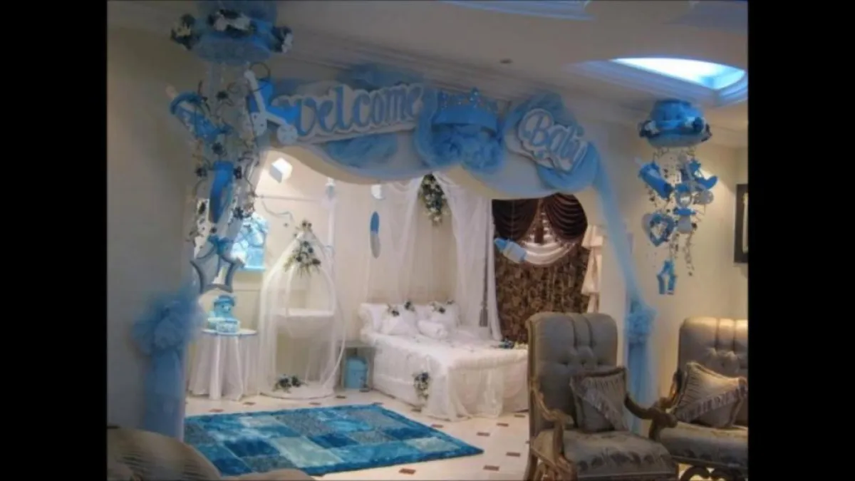 أول ما يلفت انتباه الزائرة للتهنئة بالمولود الجديد، طريقة تزيين باب منزلك، لذا يجب أن تزيِّنيه بطريقة جيدة. يمكن أن تضعي بالونات الروز إذا كان المولود أنثى، وتشكيلها على شكل ورد وقلوب، أما إذا كان صبياً، فاحرصي على اختيار اللون الأزرق والأخضر، وشكِّلي البالونات على هيئة سيارة، أو كرة، وغيرهما من الألعاب المفضلة للذكور، وليس ضرورياً أن تزيِّني سرير الطفل الرضيع بوضع كثير من الأشياء، فمن الأفضل الاكتفاء بتزيين مدخل وجدران غرفته، والسقف لكيلا يتأذى الطفل في هذا الوقت.