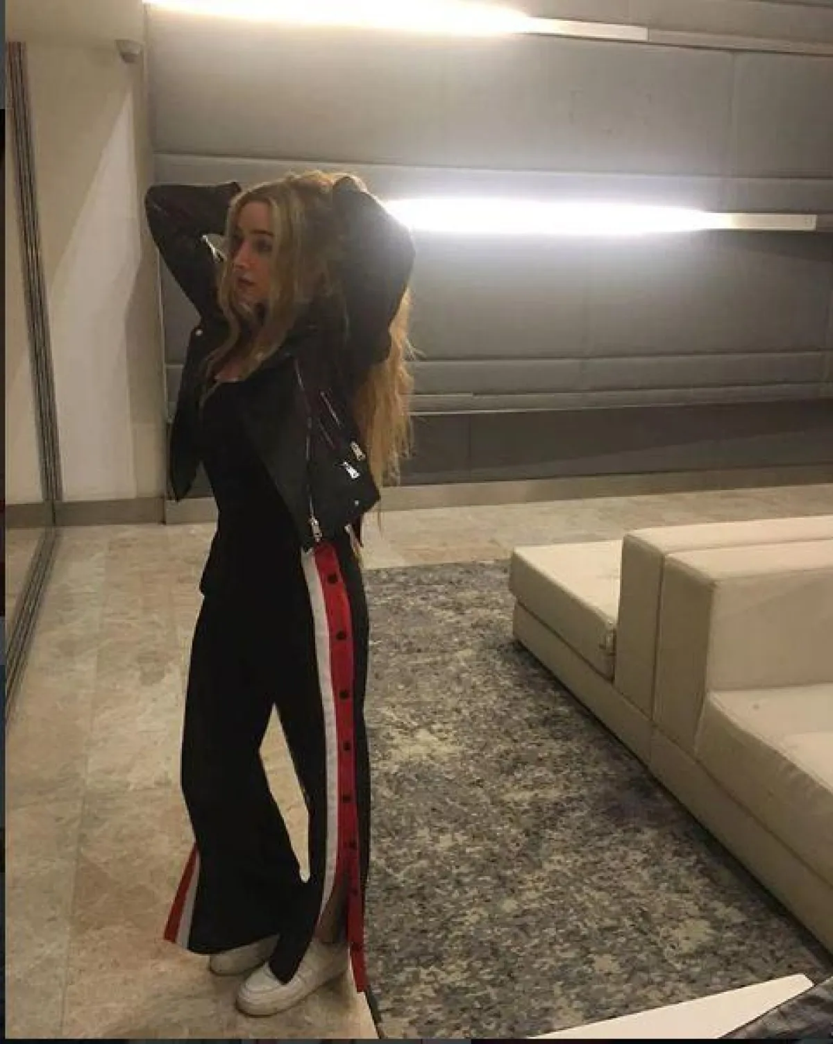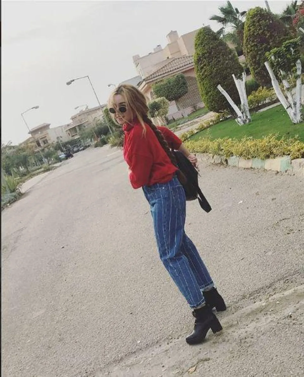 وكذلك انتقاء الجينز الواسع، في إطلالة بالبنطلون المخطط بالطول، مع حذاء الكاحل بـ الكعب العالي، والبلوفر الأحمر. كما لفتتنا إطلالاتها البسيطة بالقميص الدينم ، و البنطلون الجينز عالي الخصر، في أسلوب عصري يليق بالصبية العشرينية، ويناسب أوقات الجامعة.