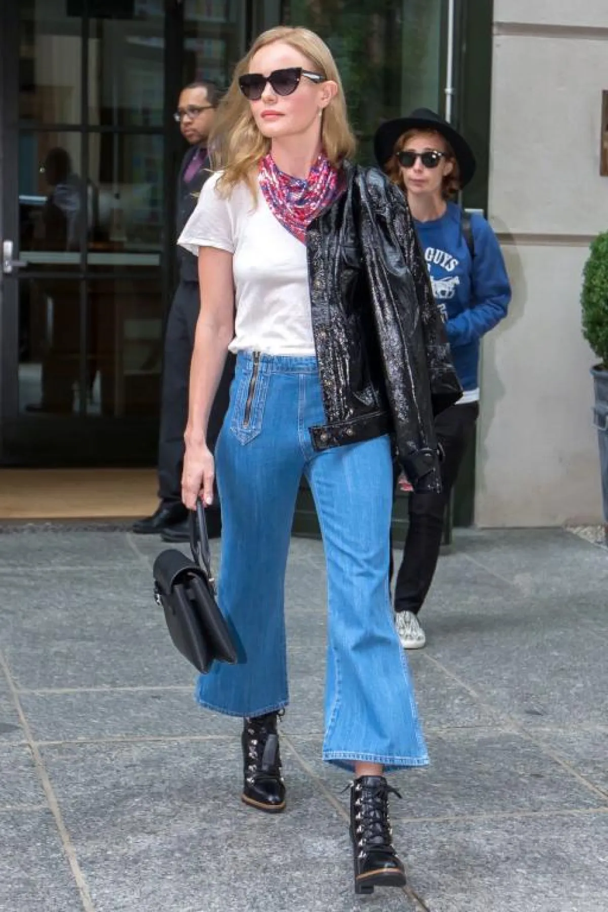 كان عنوان إحدى إطلالات النجمة Kate Bosworth كيت بوسورث الجينز الشارلستون القصير، مع تيشرت أبيض، وحذاء الكاحل الصحراوي، وجاكيت احتياطي، لإطلالة أكثر ثقة.