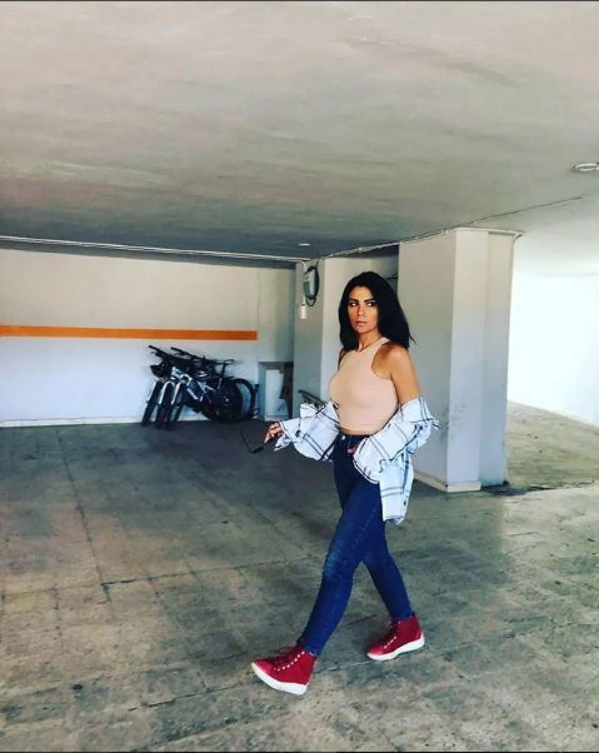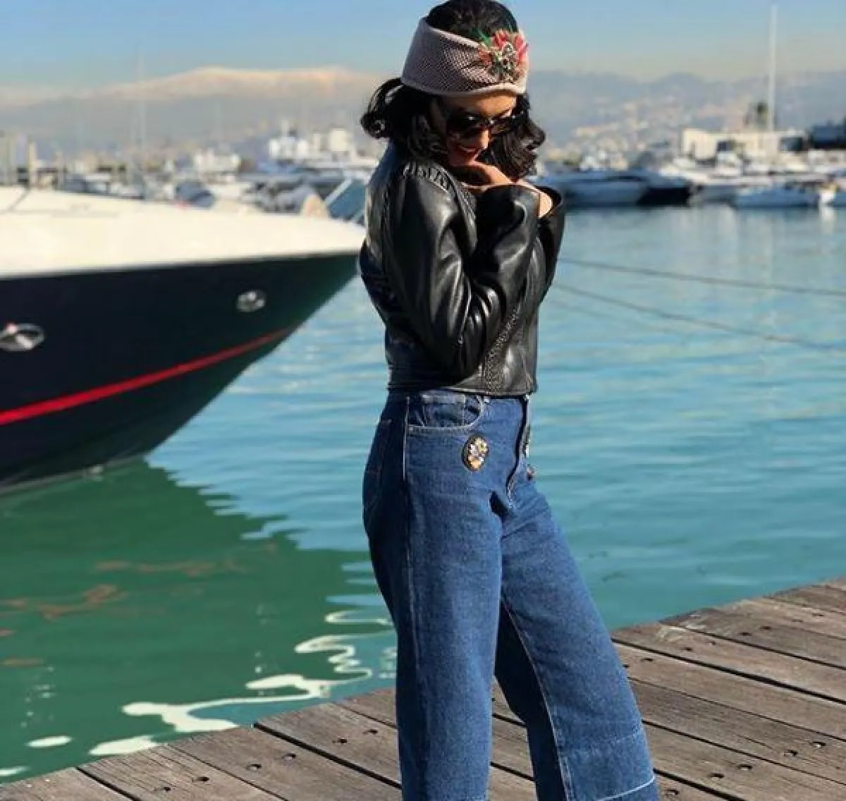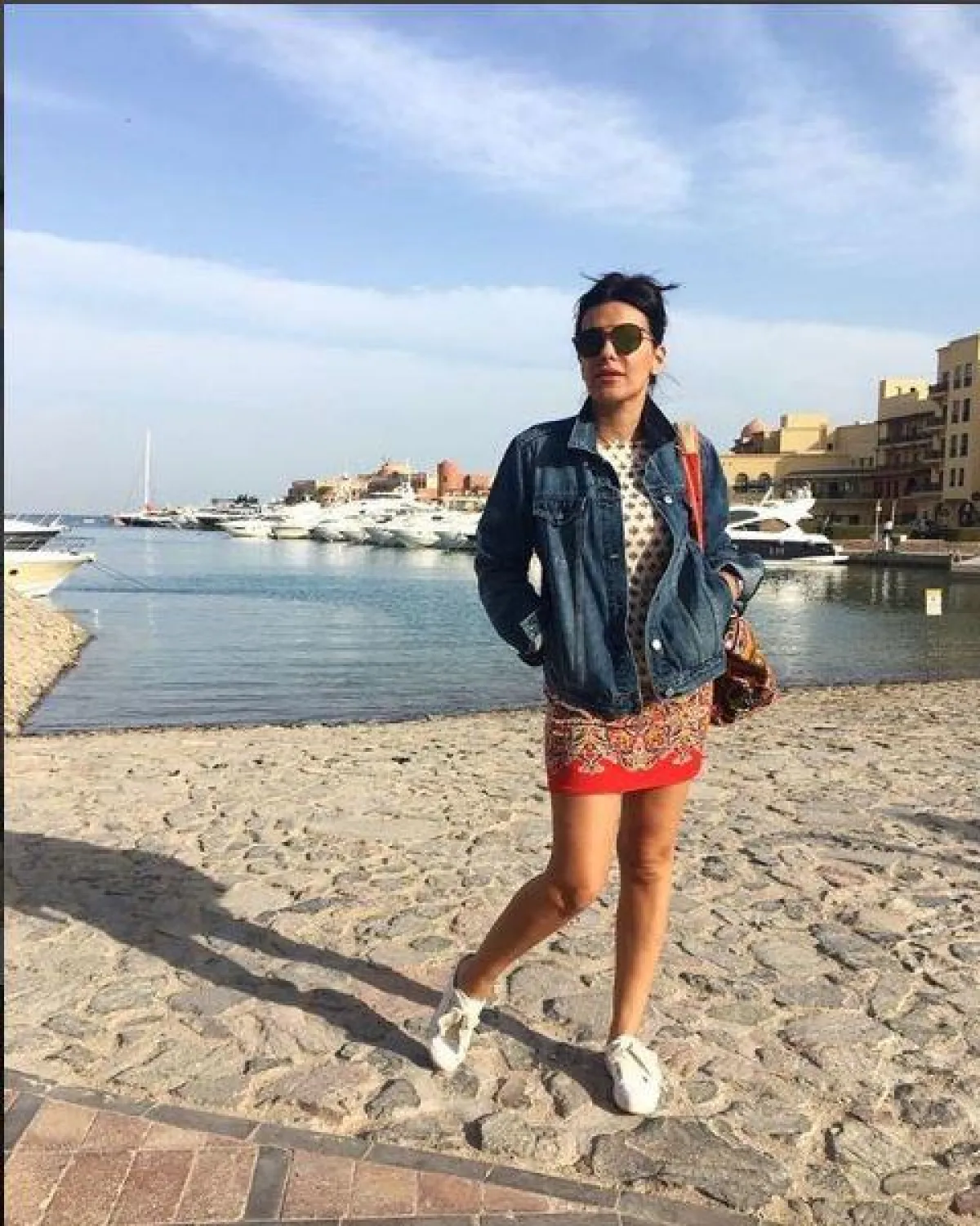 الجاكيت الجينز قطعة لابد من الوقوع في غرامها عند رؤيتها، فهي تناسب كل الأوقات ، كاختيار النجمة المصرية إنجي المقدم للجاكيت الجينز القصير مع الفستان الصيفي على البحر.