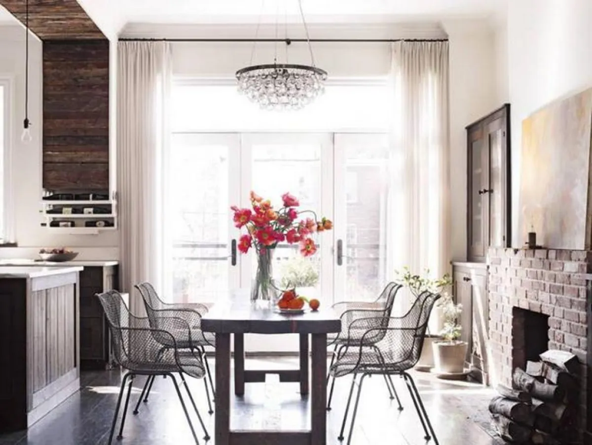 وتتّسع غرفة الطّعام لأشخاص أربعة فقط، تبرز خامة الخشب في طاولتها، التي تحوطها 4 كراس مبتكرة، ومسلّطة عليها إنارة من ثريا تتدلّى من السقف.