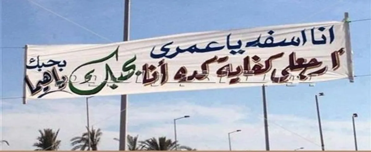 أثارت لافتة في ميدان عام مكتوب عليها اعتذار من فتاة إلى حبيبها، اهتمام رواد مواقع التواصل الاجتماعي "فيس بوك"، وتداول النشطاء لافتة معلقة في أحد شوارع مدينة "ميت سلسيل" بمحافظة الدقهلية، وكتبت عليها: "أنا آسفة يا عمري".
