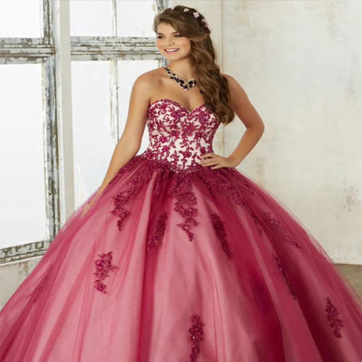 أما إذا كنت تتمتعين بشعر طويل تريدين إبراز جماله، مع فستان منفوش دون الكثير من التطريزات البارزة، أو بخامات الميتاليك، فلم لا تتركيه منسدلا على كلا الجانبين، مع الفرق في المنتصف، ومموج من الأطراف. وإن شئت ضعي تاج صغير، مع أقراط مميزة ، أو عقد من الماس.