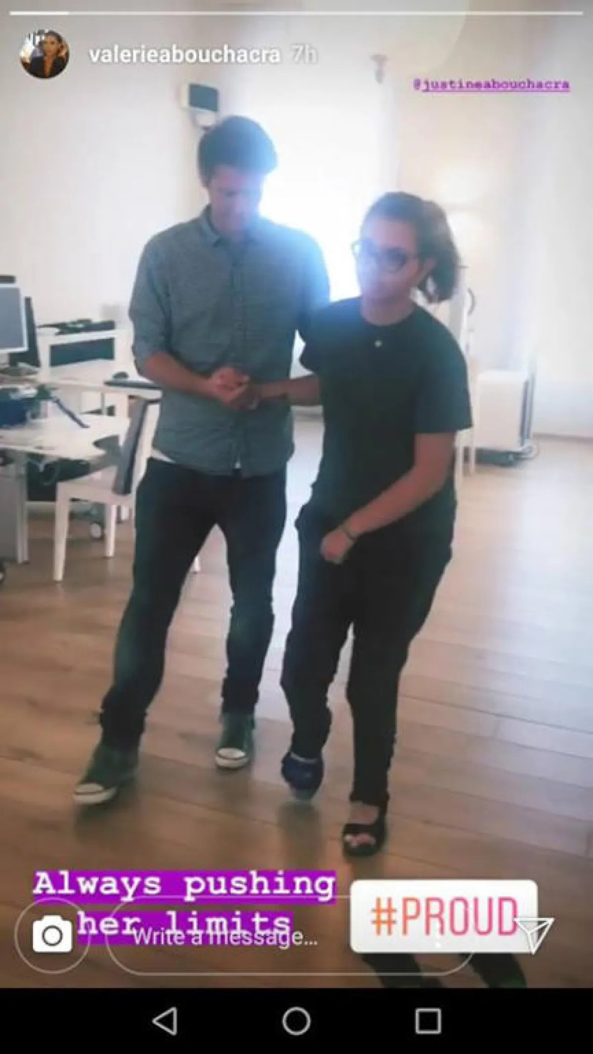 لقد نشرت فاليري أبو شقرا عبر حسابها الرّسميّ على موقع "إنستا ستوري" مقطع فيديو لشقيقتها جوستين وهي تمشي بمفردها، متخلية عن الكرسي المتحرك الذي كان تضطر لاستخدامه في تحركاتها، بعد أن فقدت القدرة على المشي إثر تعرضها لحادث سير أليم.