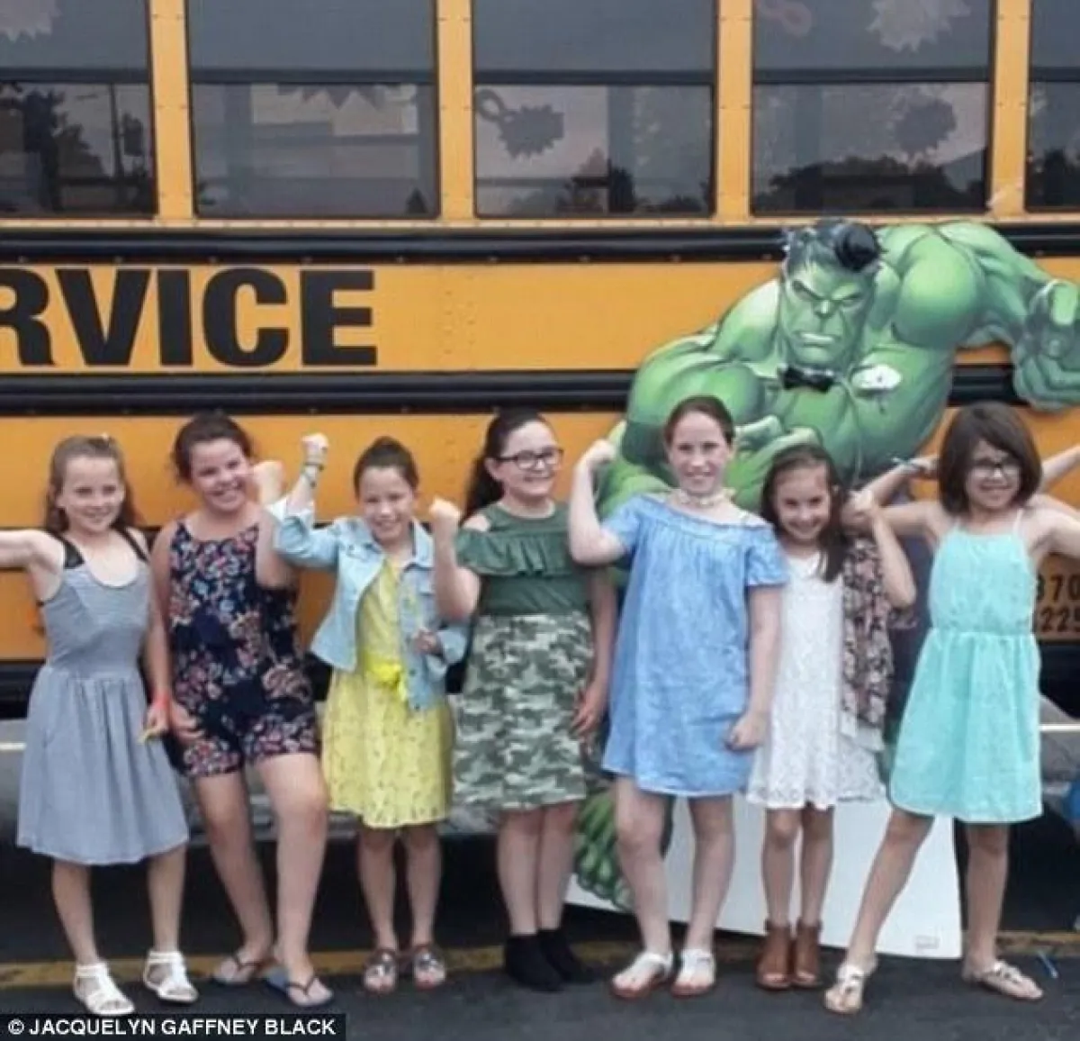 فقد بدوا مسرورين للانضمام إلى هذه المناسبة السعيدة، وهم يقفون بجانب العروس، كما أخذ الأطفال مجموعة من الصور أمام حافلة المدرسة.