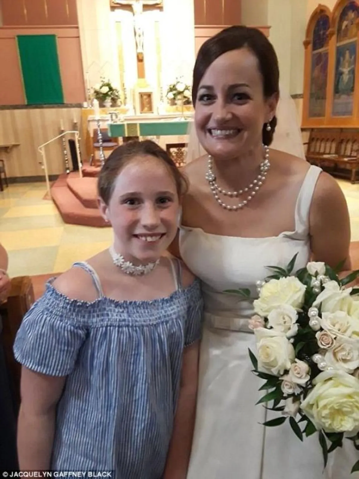 وحضر الحفل حوالي 30 من طلاب «آشلين» مع والديهم في كنيسة «سانت سيسيليا»، التابعة للمدرسة التي تدرس فيها العروس.