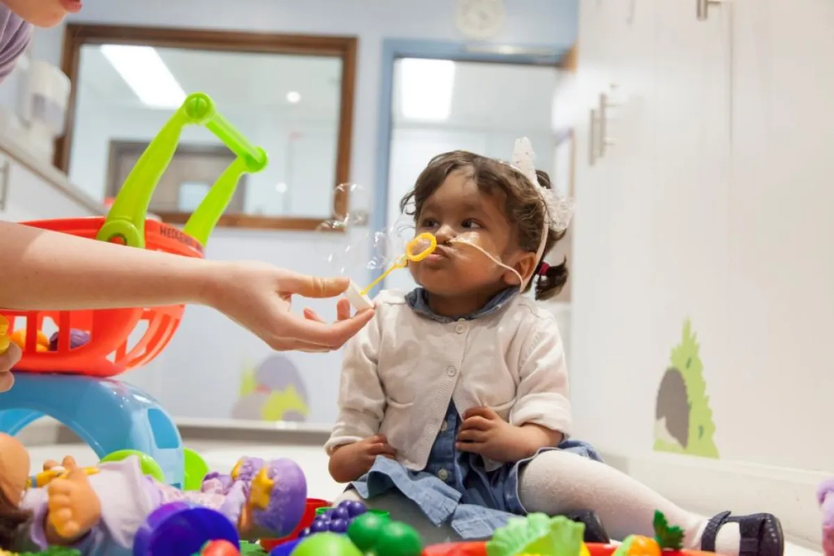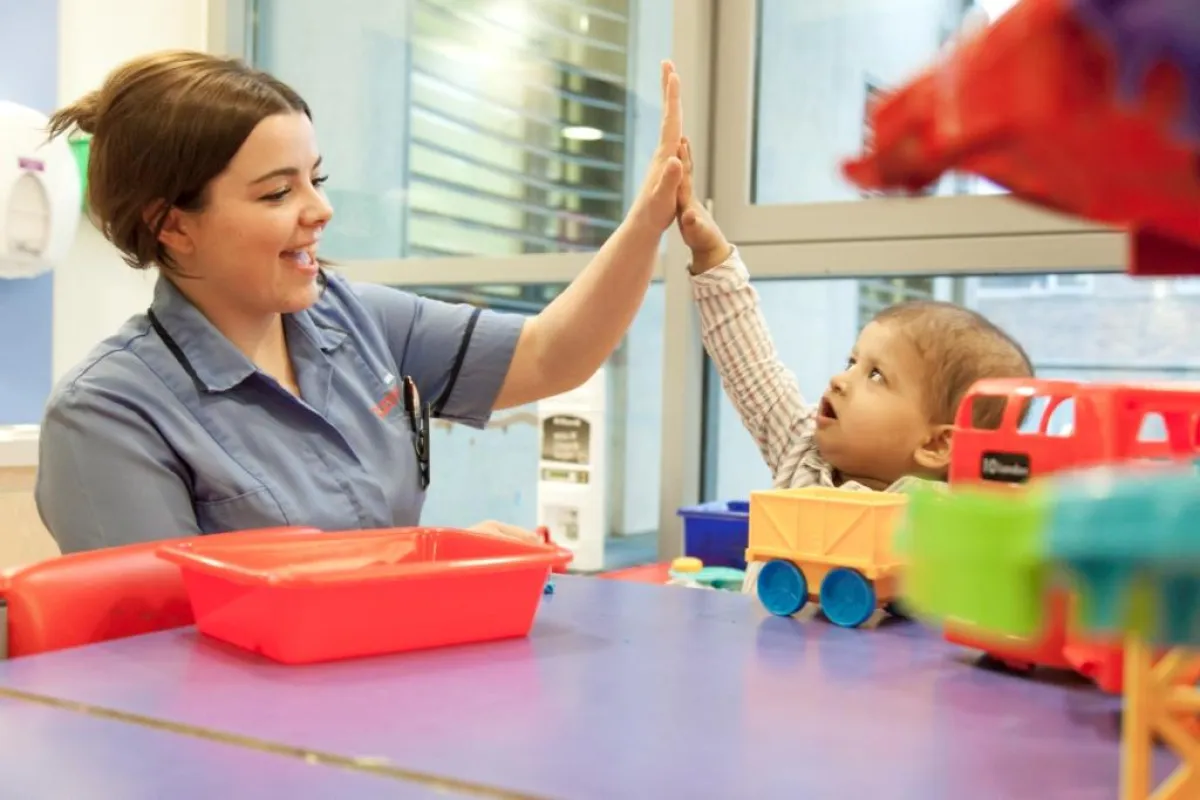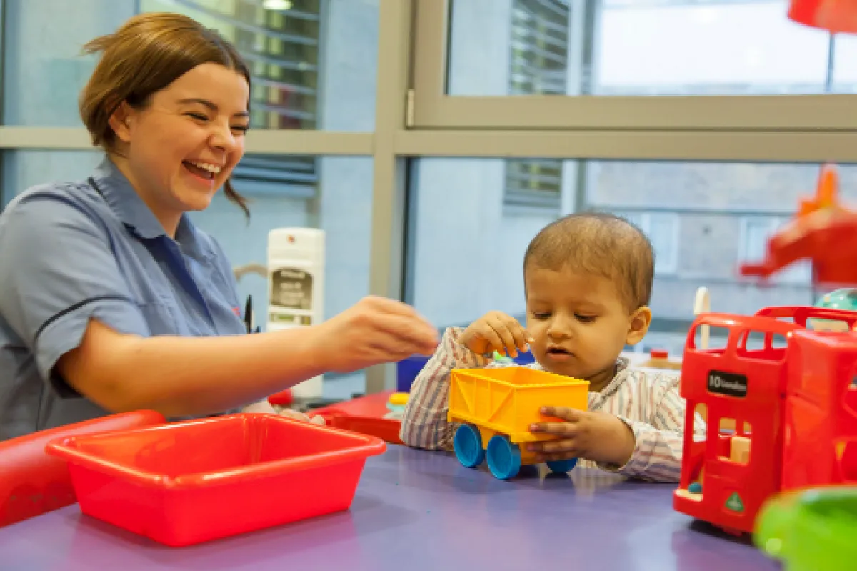 يتضمن مستشفى جريت أورموند ستريت للأطفال قسمًا خاصًا باللعب يعمل فيه متخصصون ومدربين في اللعب. ومهمتنا إضفاء مزيد من الطبيعية على الحياة في المستشفى وتوفير فرص اللعب لدعم التعلم الطبيعي من خلاله. نحن نقدم لعبًا علاجيًا متخصصًا لمساعدة المرضى في التكيف مع تشخيصهم وحالتهم وعلاجاتهم. منها مثلًا استخدام الفريق أساليب تشتيت الانتباه لشغل الأطفال وتشتيتهم قبل اختبارات الدم وخلالها ليشعروا بتجربة أكثر راحة وأقل إزعاجًا.