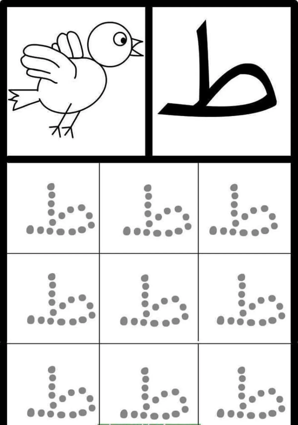 لا زلنا في سلسلة تعليم الاطفال الحروف، لنصل إلى الحروف المتشابهة والتي تختلف في نقطة واحدة حرف الطاء، وحرف الظاء، ولذلك عليك إتباع الخطوات التالية في تعليم حرف الطاء أولاً لطفلك: