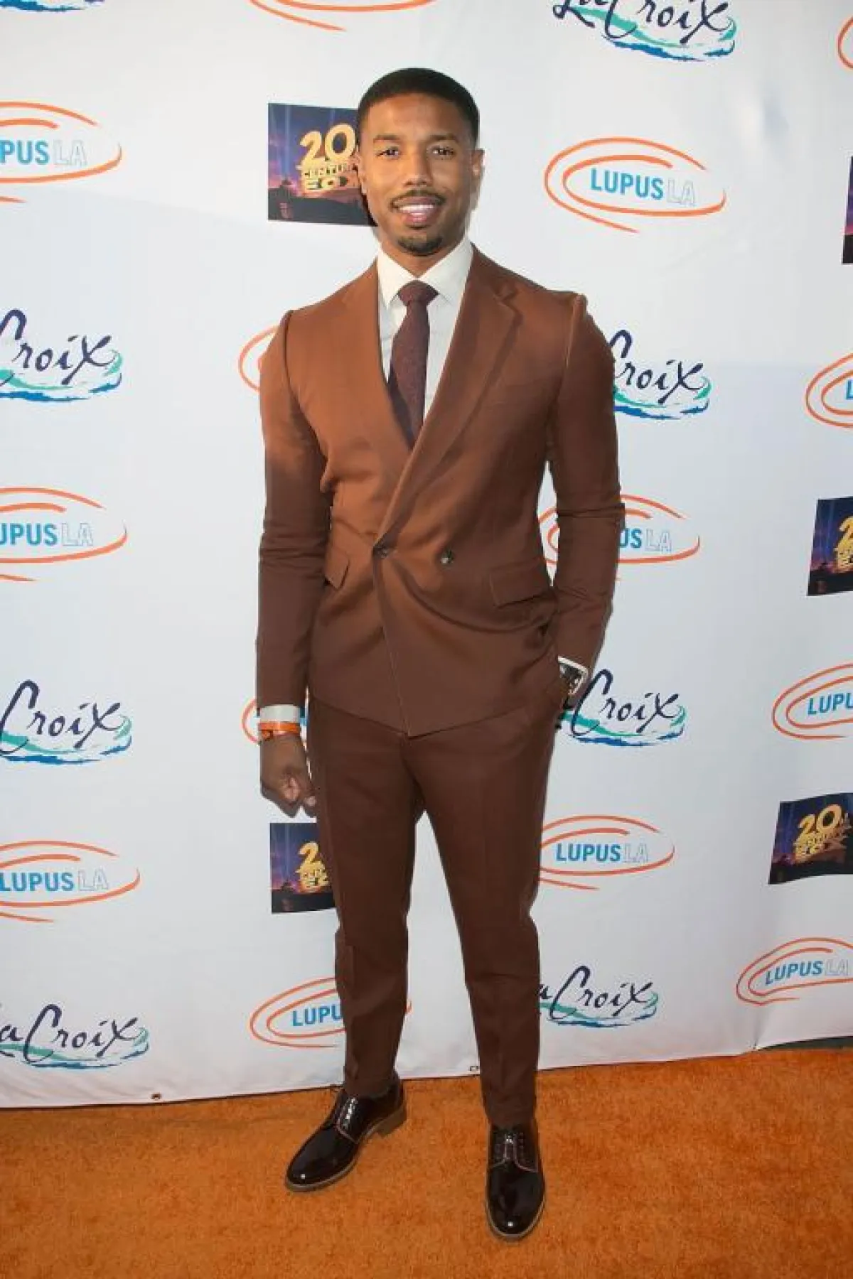 لفتتنا كذلك البدلة باللون البني من النجم Michael B. Jordan مايكل بي جوردان، بتصميم أزرار ال warp التي تناسب الرجل القصير، إذ تمنحه مظهرًا أكثر رشاقة، لكنها لا تناسب الرجل صاحب "الكرش"، كما جاء اختيار ربطة العنق البنية موفقًا لإطلالة أكثر حيادية بسيطة.