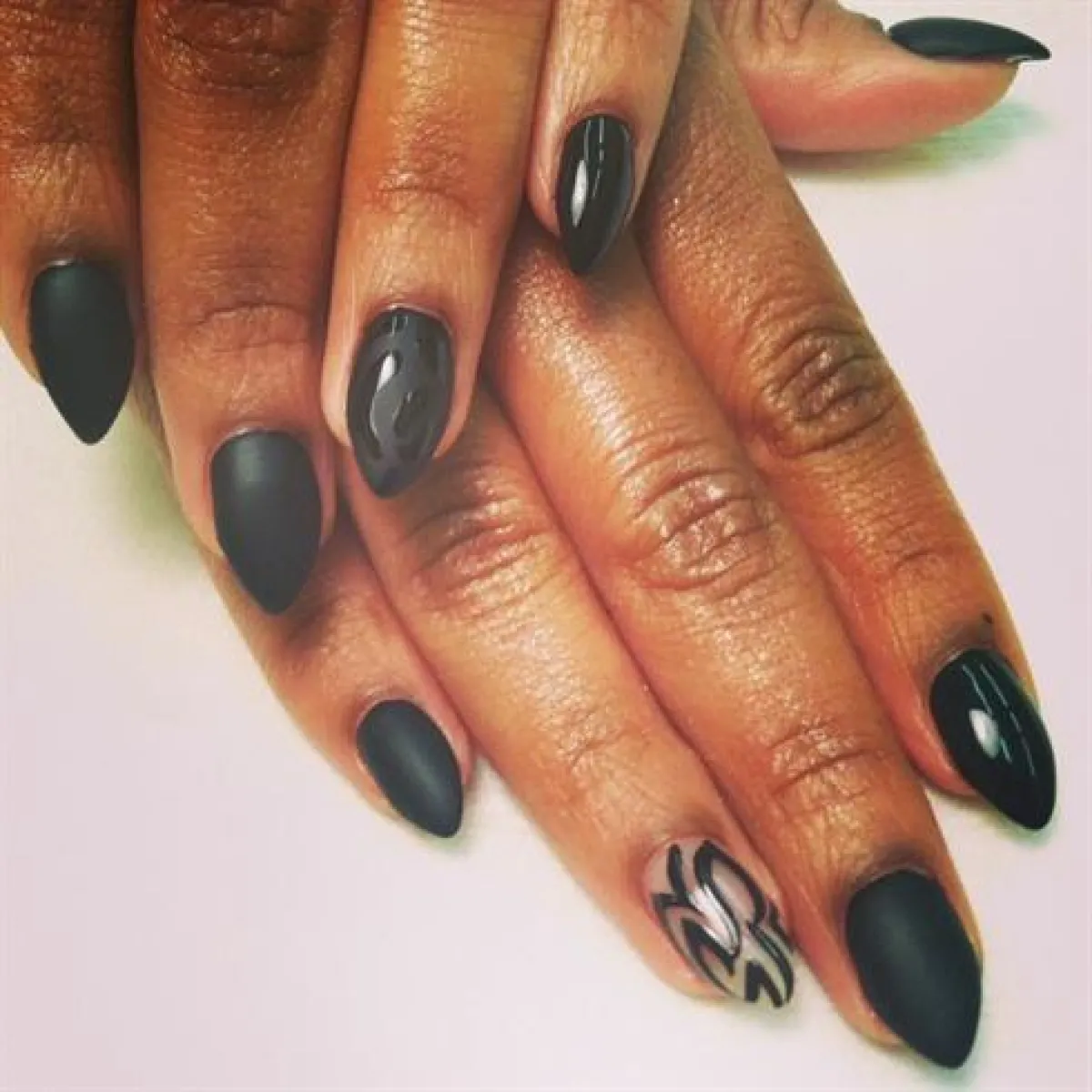 درجات اللون الأسود المفضلة لدى الكثيرات من نجمات العالم صاحبات البشرة الخمرية، مثل ريهانا Rihana، ومايا دياب، مع الأظافر المدبّبة الطويلة، واكسسوارات اليد اللامعة.