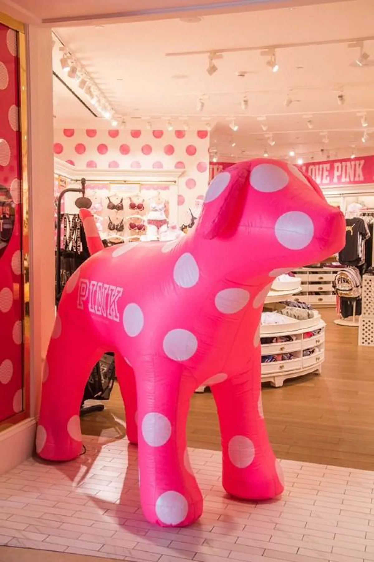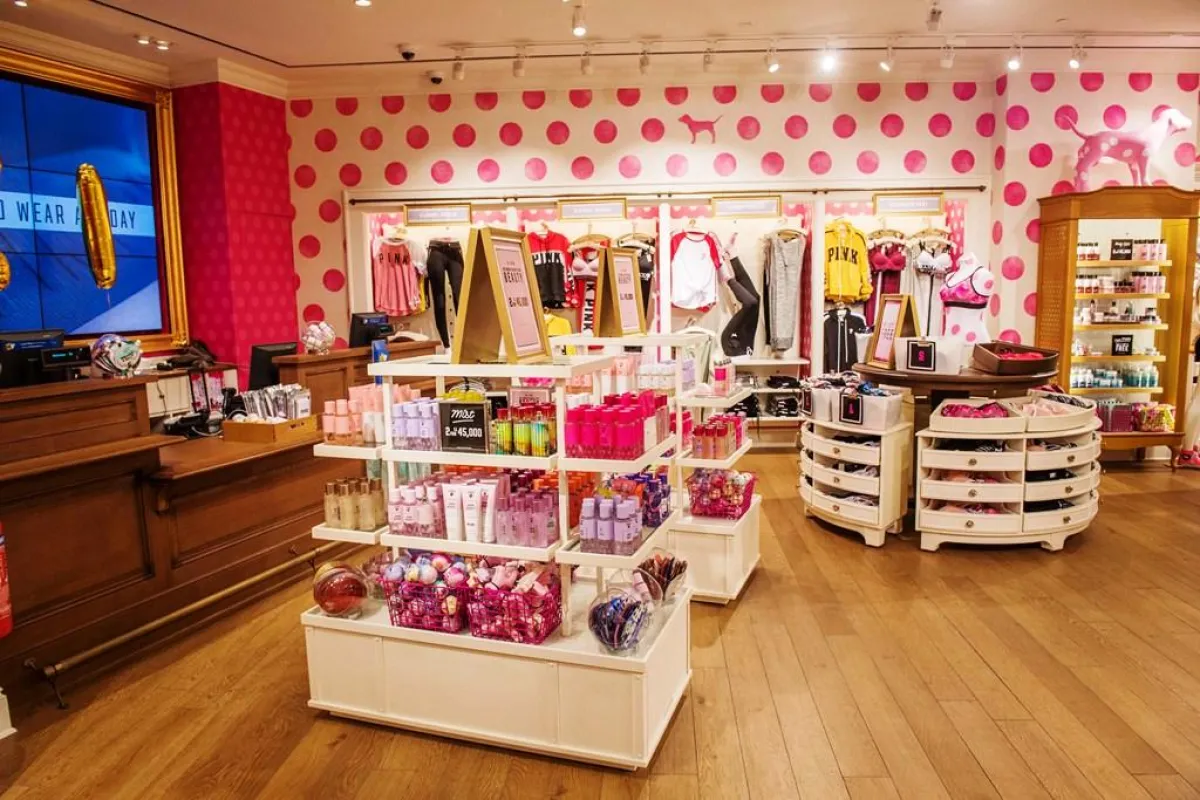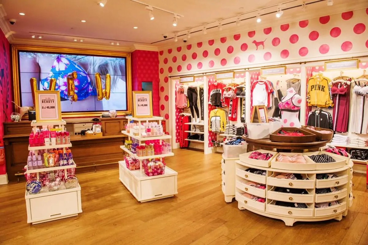 يقع متجر PINK في الطابق الأول، ويتّسم بلمسة مفعمة بالألوان والأنوثة. كما يوفّر للنساء باقة واسعة من الملابس الداخلية وملابس النوم والملابس الرياضية، فضلاً عن مجموعة من مستحضرات التجميل.