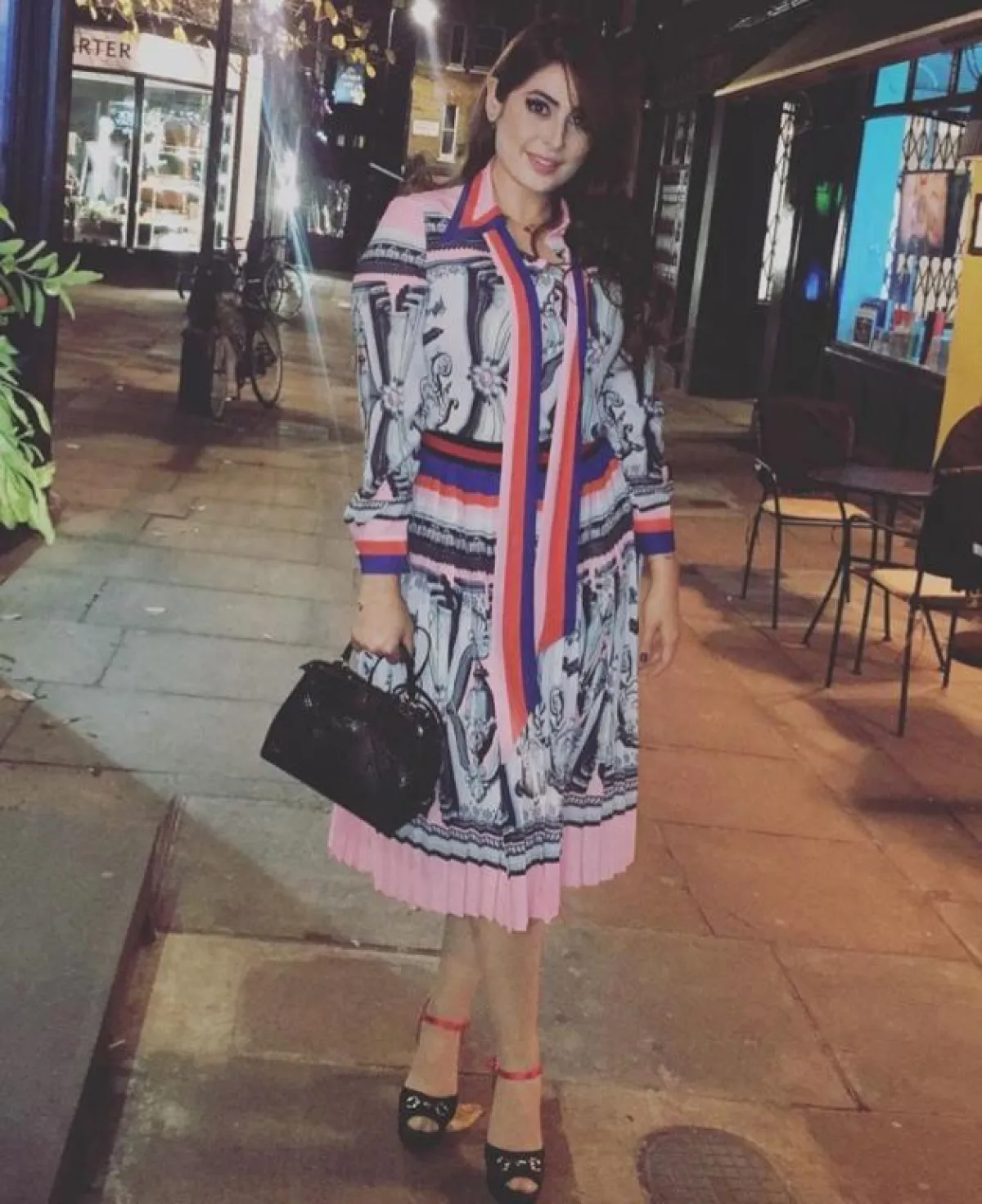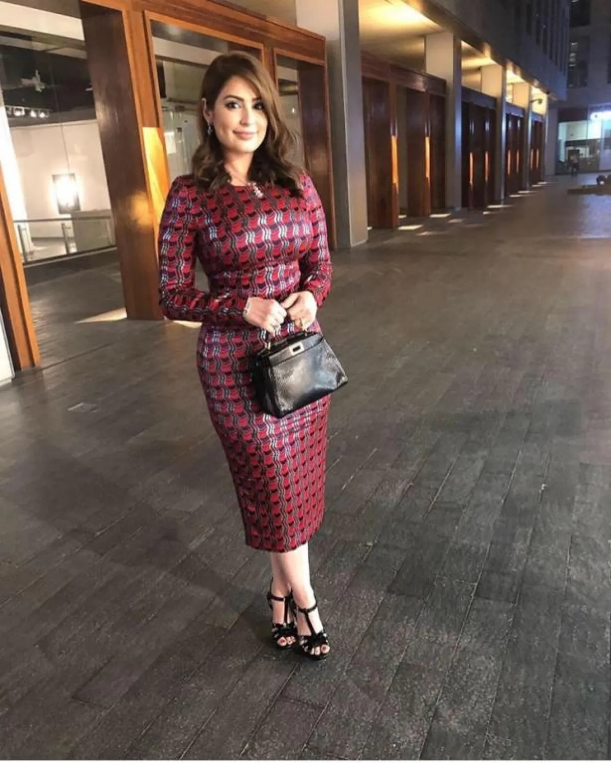 كما نشرت الصبان صورة لها على حسابها على الانستقرام باطلالة أنيقة جدًّا، وهي عبارة عن فستان ميدي بقصة ضيقة وأكمام طويلة، نسقته مع حقيبة سوداء من فندي Fendi، وصندل كلاسيكي من سان لوران Saint Laurent.
