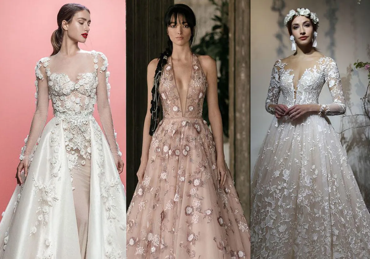 تعد فساتين الزفاف المزينة بــ الورود من التوجهات الرائجة في عالم الأعراس، وخاصةً لحفلات الزفاف الصيفية؛ حيث تبدو عصرية ومرحة، وتناسب العروس التي تبحث عن فستان زفاف رومانسي.