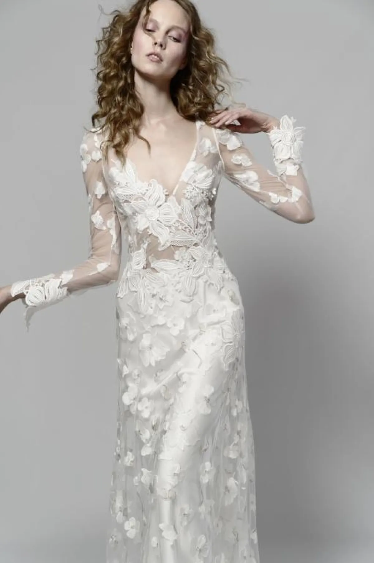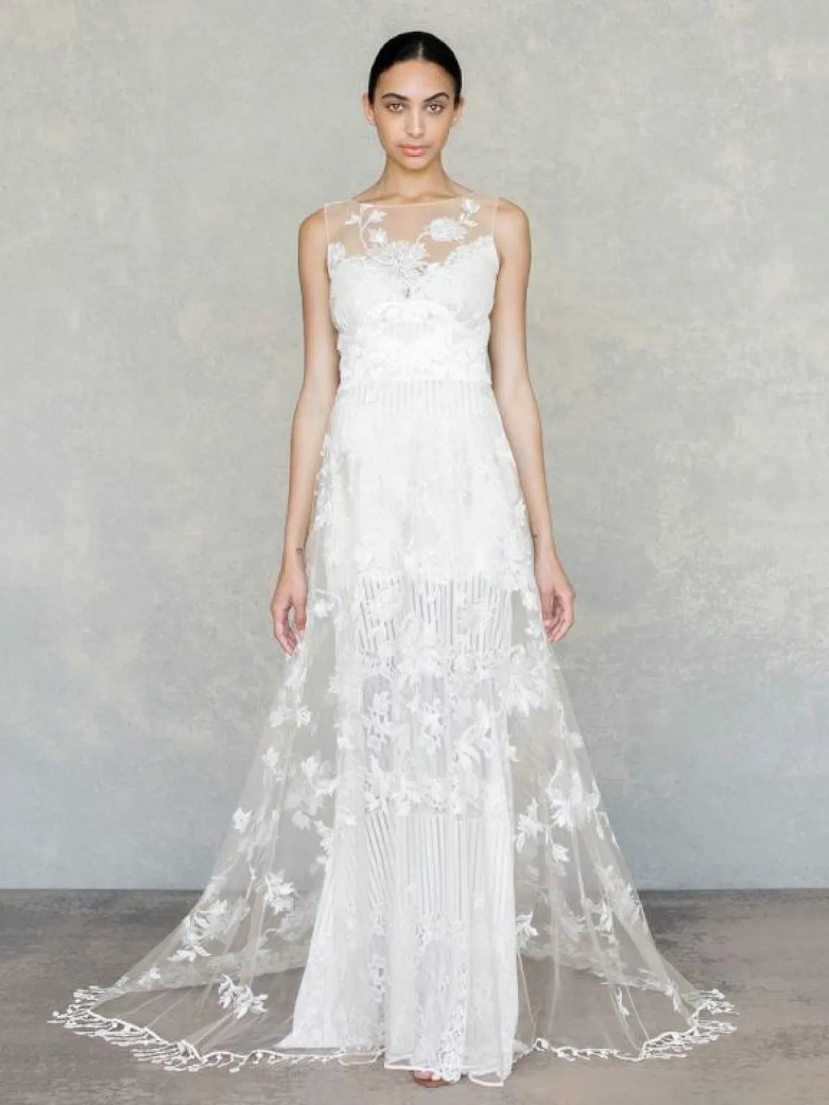 وللعروس التي تبحث عن فستان زفاف بتصميم بسيط وناعم، يمكن أن تختار فساتين الزفاف المزودة بطبقة من القماش الشفاف والمزينة بالورود، سواء كانت بقصّة عمودية أو واسعة قليلاً، مثل فساتين كلير بيتيبون Claire Pettibon، و Elizabeth Fillmore.