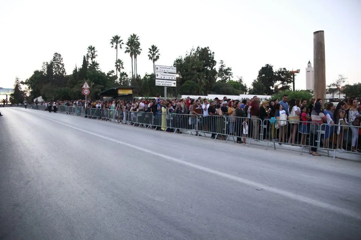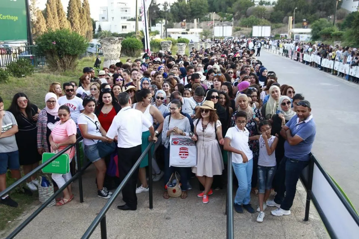 وتوافدت الجماهير الغفيرة إلى المسرح منذ الظهيرة، رغم ارتفاع درجات الحرارة لتمتلئ المدارج منذ الساعة السابعة مساءً، رغم أنّ الحفل انطلق في العاشرة ليلًا .
