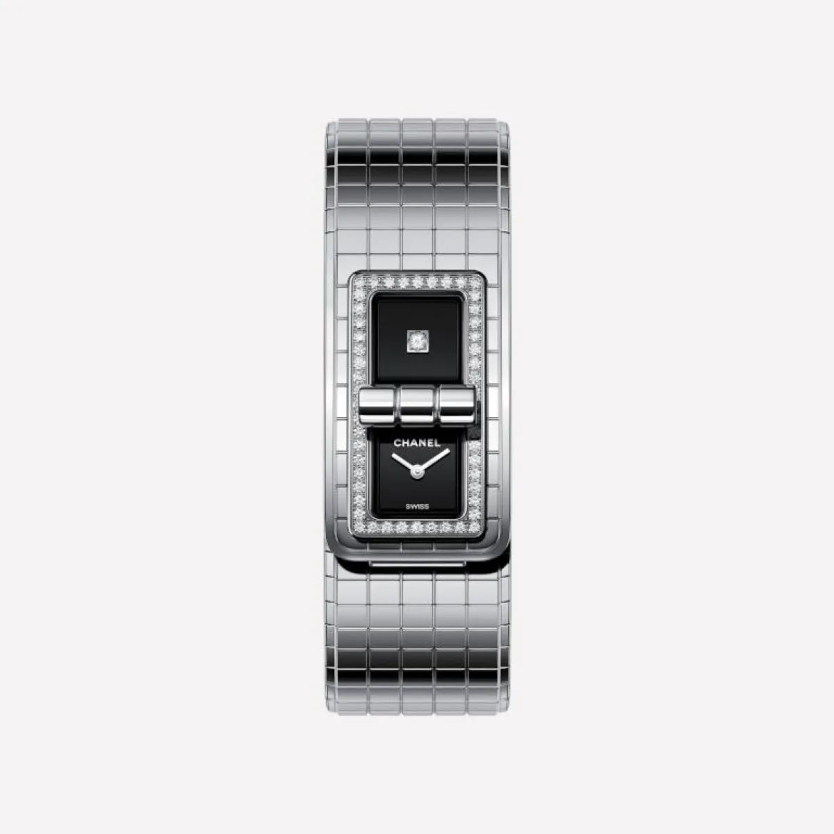 لفتتنا هذه الساعة الأنيقة التي قدّمتها دار شانيل CHANEL ضمن مجموعة كود كوكو Code Coco وهي ساعة بتصاميم عصري، مصنوعة من الفولاذ مع إطار مرصّع بالألماس وميناء باللون الأسود.