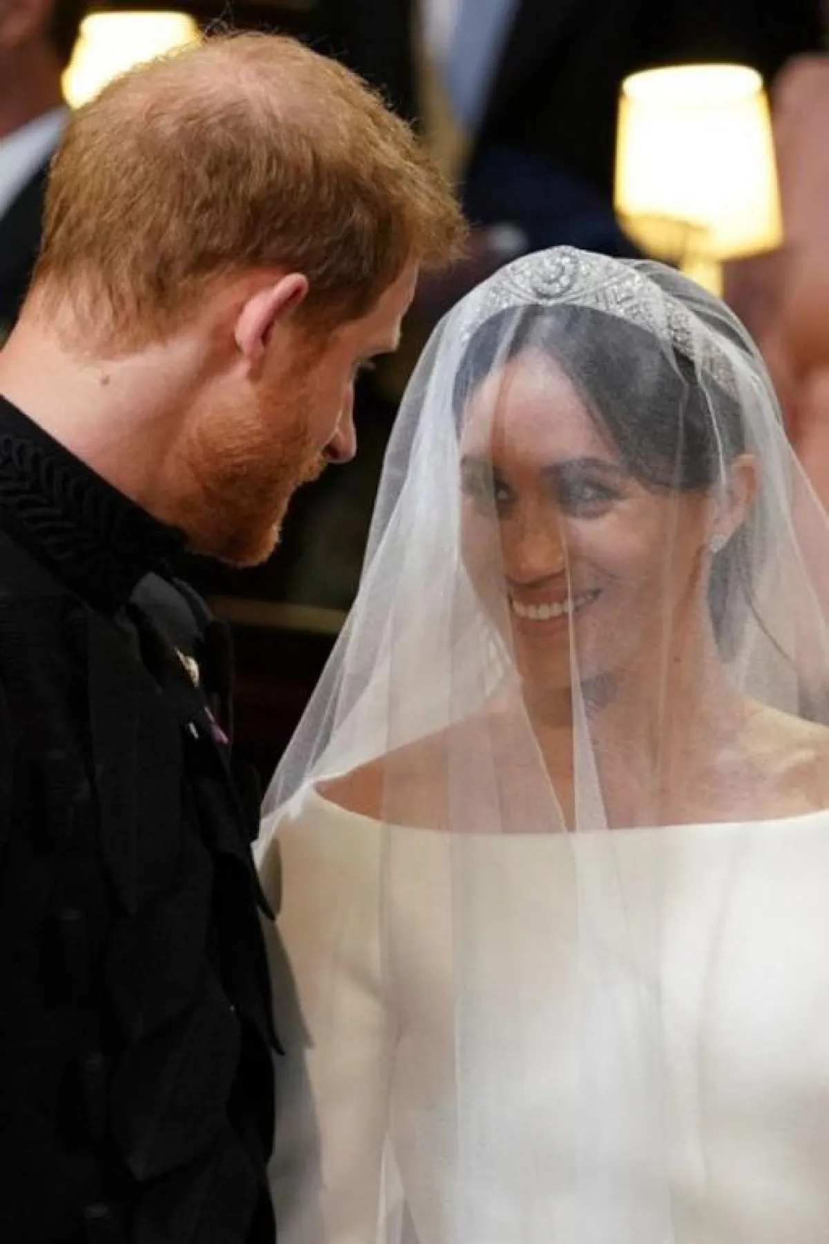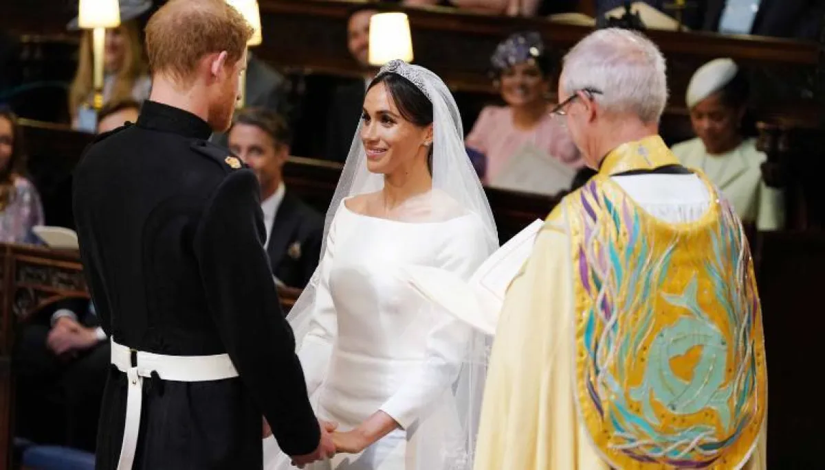 تجري مراسم حفل زفاف الأمير هاري وميغان ماركل في كنيسة سانت جورج في قلعة ويندسور، يومها وصلت العروس إلى الحفل برفقة والدتها، ثم قام والد الأمير هاري الأمير تشارلز باصطحاب عروس ابنه إلى داخل الكنيسة. وظهرت العروس ميغان ماركل بغاية الأناقة، وارتدت فستانًا أبيض من دون إدخال الشك أو التطريز إلى تصميمه، وهو من توقيع دار "جيفنشي"، بالإضافة إلى طرحة طويلة زينت الفستان. أما تسريحة الشعر فأتت ناعمة تناسب إطلالة العروس، أيضًا أضافت ميغان ماركل إلى تسريحتها تاجًا ناعمًا من تصميم Queen Mary's diamond bandeau .