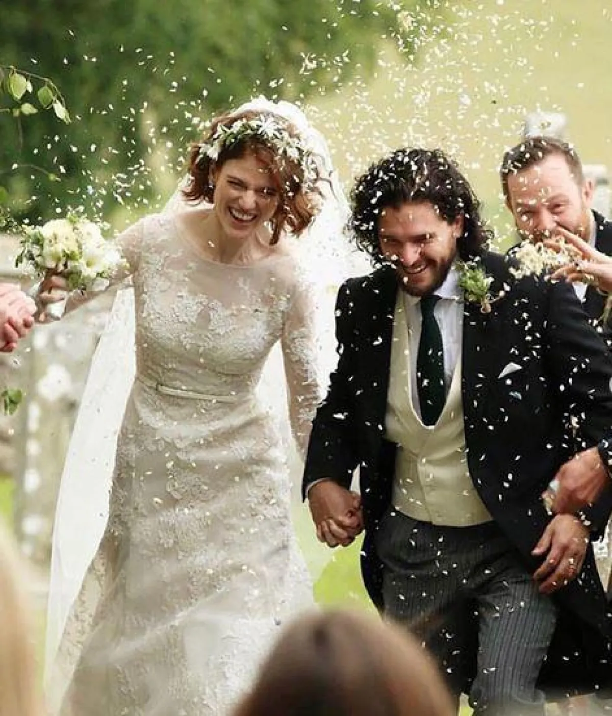 تألقت "روز ليزلي"، التي لعبت دور "ايغريت" حبيبة "هارينغتون" في مسلسل "Games of Thron"، فستان زفاف عاجي من تصميم إيلي صعب من قماش الدانتيل بأكمام طويلة، غاية في الأناقة والرقي، وزيَّنت رأسها بتاج من الورود البيضاء، وطرحة بيضاء طويلة من قماش الشيفون أُسدلت وراء كتفيها، في حين لم تضع مستحضرات تجميل تذكر على بشرتها، وحملت بين يديها باقة من الورود البيضاء.