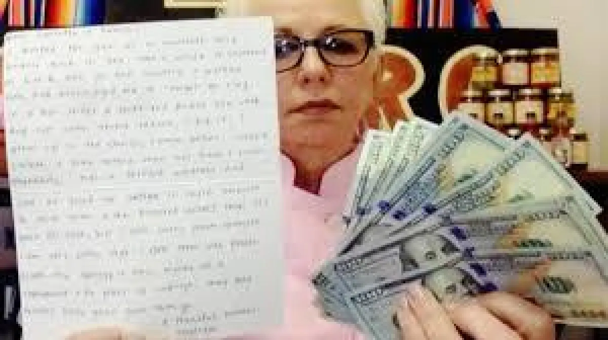 وكان المظروف يحتوي على رسالة اعتذار، من نادلة سابقة عملت في التسعينيات من القرن الماضي في المطعم، واضطرت إلى سرقة بضع مئات من الدولارات، وأرادت الاعتذار عن ذلك، وأرفقت مبلغ 1000 دولار مع الرسالة، بحسب موقع "إن دي تي في".