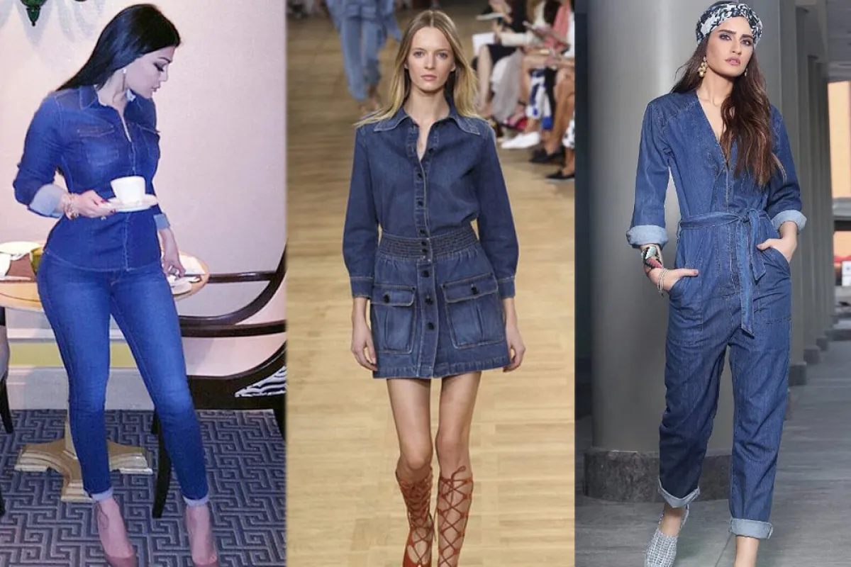 إن لم يكن الفستان هو الاختيار الذي تفضلينه، فيمكنكِ اقتناء قطعة أخرى من الجينز مثل البدلة التي ظهرت بها فيكتوريا بيكهام من أحدث مجموعاتها، وتميز هذا التصميم بسترة مزودة أيضاً بحزام، مع بنطلون ينسدل باتساع يزيد المرأة رشاقة وطولاً.