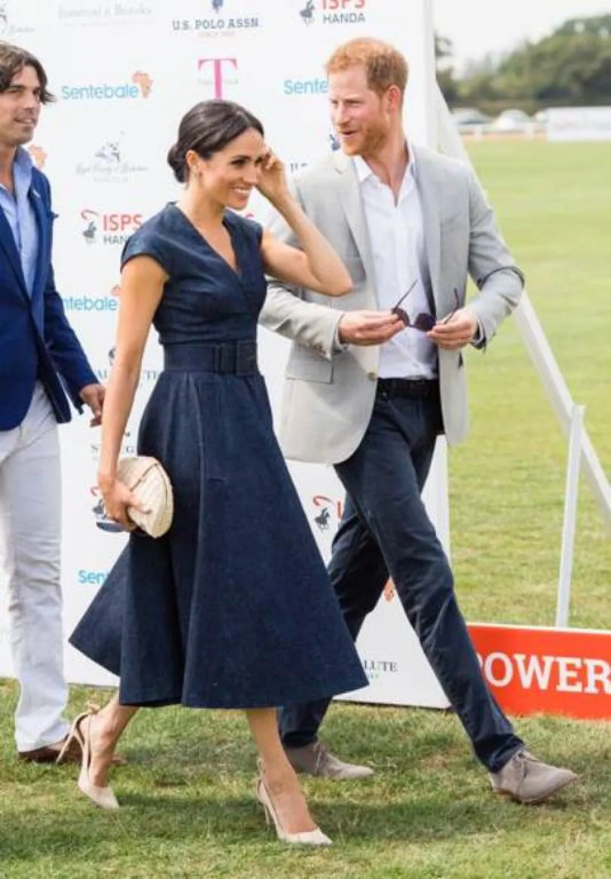 أطلت ميغان خلال حضورها لكأس بولو سينتابيال؛ لتشجيع فريق زوجها، الأمير هاري، بفستان من الجينز الأزرق بتوقيع دار كارولينا هريرا، وتميز الفستان الذي يميل إلى الاتجاه الكاجوال بحزام الخصر الذي يعد سلاح المرأة لتبدو بخصر نحيف، أما الحذاء والحقيبة فجاءا بدرجات النيود التي تفضلها ميغان ماركل في كثير من إطلالاتها، وجاءت هذه الإطلالة لتعيد الاهتمام إلى هذا النسيج الذي يعتبره البعض اختياراً متواضعاً.