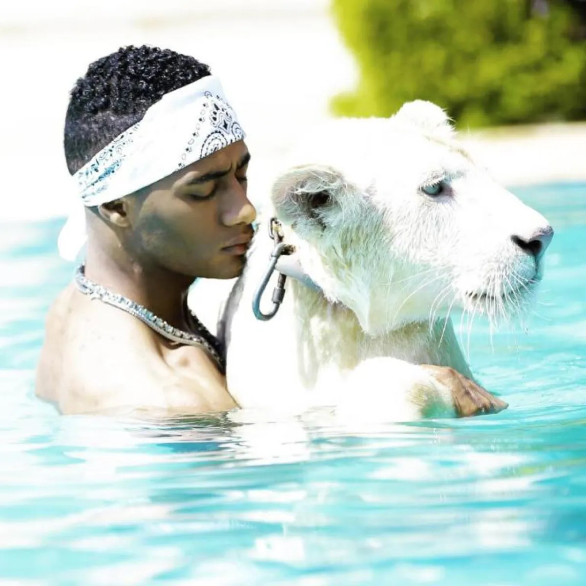 نشر الفنان محمد رمضان صورة له مع نمر مفترس أبيض اللون، أثناء وجوده في حمّام السباحة، ما دفع الكثيرين للحديث عن شجاعة الفنان الشاب، خصوصًا بعد شهرته من خلال فيلم "قلب الأسد"، الذي ظهر خلاله في العديد من المشاهد بصحبة أسد حقيقي، وكان سببًا في الشهرة الكبيرة التي حققها الفنان الشاب.