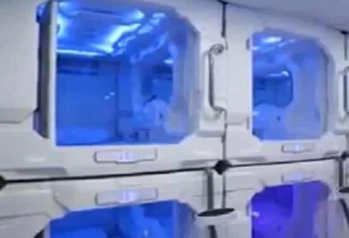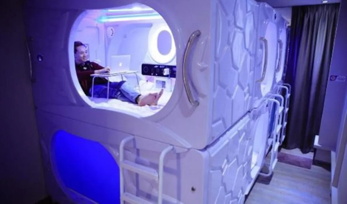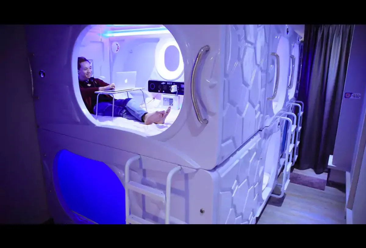 وجاء في الفيديو الذي تضمن شروحًا عن تصميم «الكبسولات»، أن فكرة الغرفة الفندقية بكل خدماتها وتجهيزاتها هي عبارة عن «كبسولة» مصنوعة من البلاستيك والألياف الزجاجية الفايبر كلاس، بطول 220 سم وعرض 120 سم وارتفاع 120 سم، وتحتوي على وسائل الراحة والسلامة.