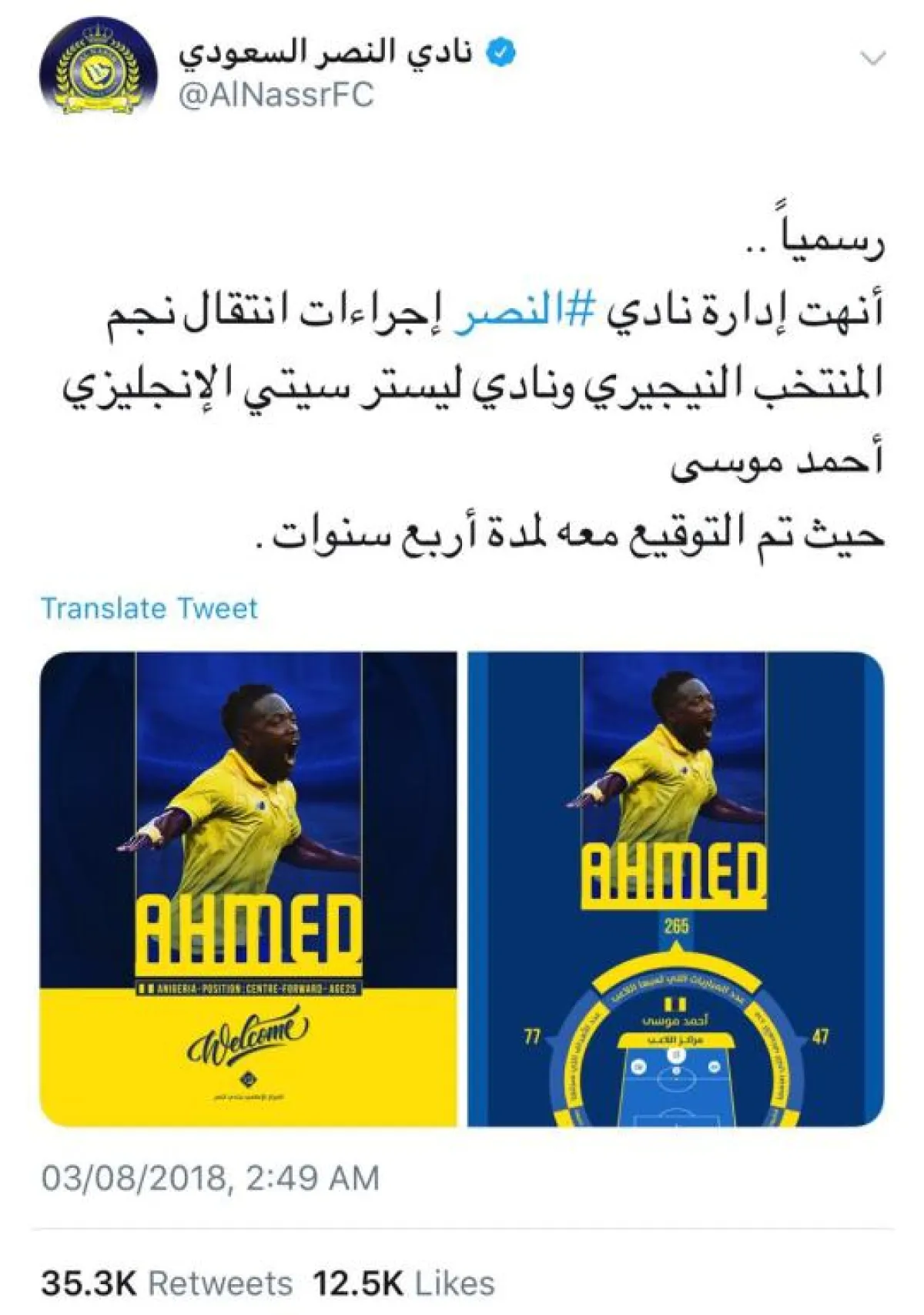 أعلن نادي النصر السعودي، بطريقة مبتكرة، انضمام اللاعب أحمد موسى إلى صفوفه لمدة أربعة مواسم بـ ١٤٨ مليون ريال، في أغلى صفقة في تاريخ الكرة السعودية. فمَن هو موسى، وكيف جاءت ردة فعل جماهير النصر عند سماعها الخبر؟