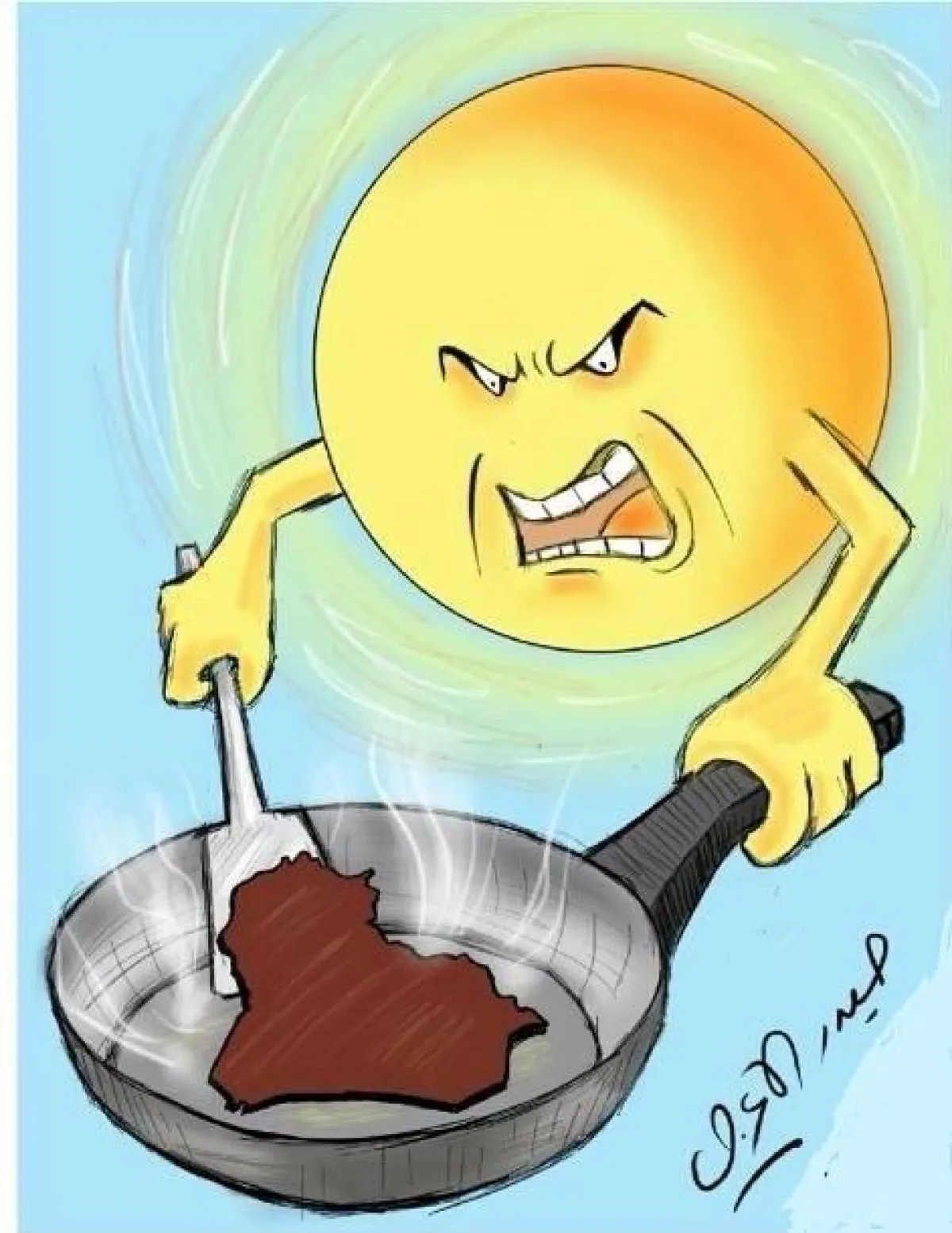 طرائف العراقيين وتندرهم على الحر في مواقع التواصل الاجتماعي لا تتوقف؛ حيث يطالب بعضهم بمعاقبة المغني الذي أنشد: "الشمس شمسي والعراق عراقي" لأنه شجع الشمس على البقاء في البلد، فيما يلقي آخرون اللوم على الفنان سعدون جابر، الذي غنى "يا شمسنا الدايرة مري بأهلي"، وعلق أحدهم قائلاً: "يبدو أن العراق قد عمل ربط مباشر مع الشمس"، وقام آخر بنشر فيديو لمقلاة فيها زيت يغلي بعد أن وجهها مباشرة نحو عين الشمس في وقت الظهيرة، ثم كسر بيضة ووضعها في المقلاة.. ودعا الأصدقاء إلى وليمة!