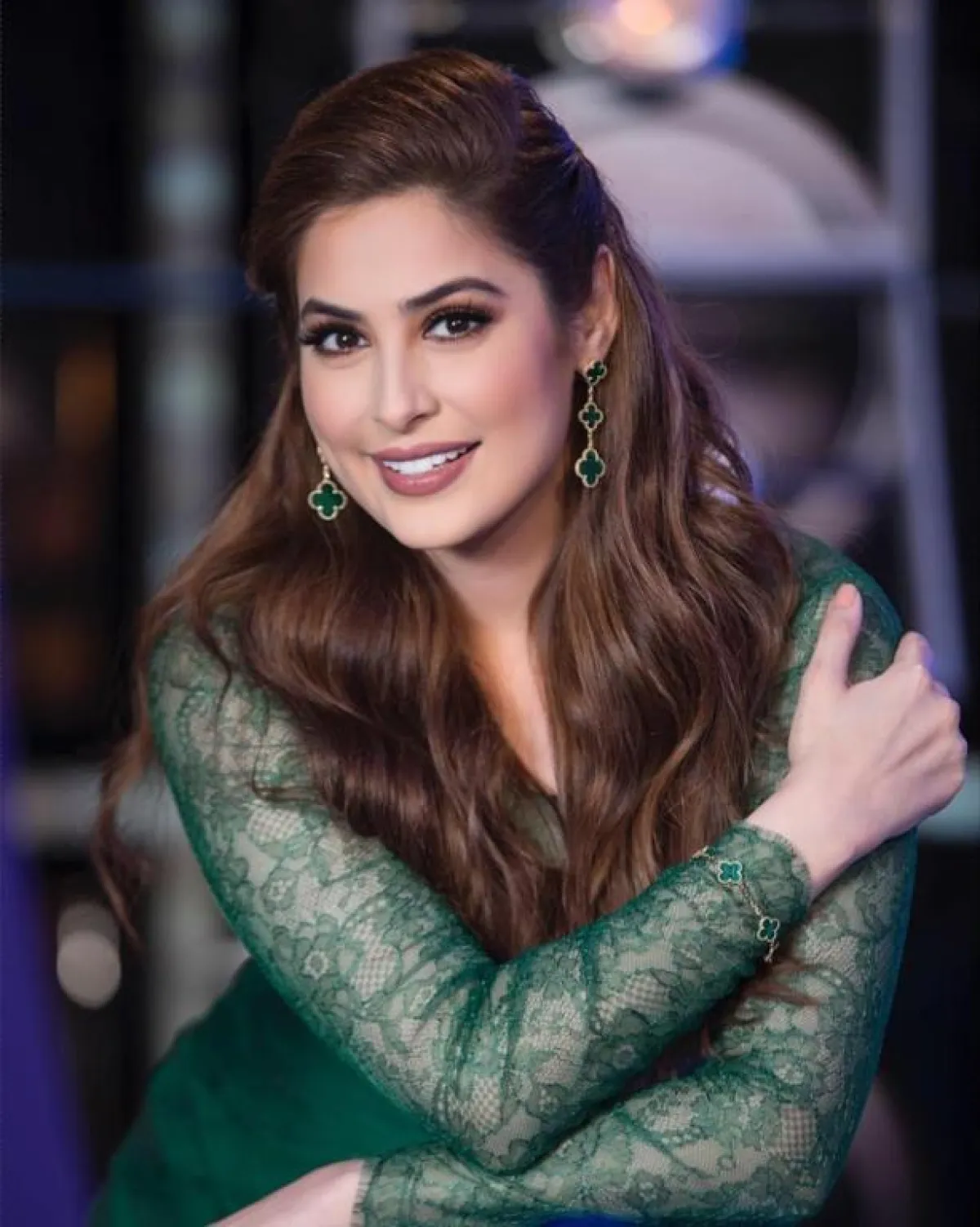 نلاحظ أن الأقراط قطعة أساسية لدى رؤى الصبان، وعادة ما تختار الحجم المتوسط مع عقد بسيط، أما إذا ذهبت لأقراط كبيرة الحجم نسبة لاختياراتها فتستغني على الفور عن العقد، كما أنها تنوع بين الذهب الأبيض والأصفر وبين الألماس والأحجار الكريمة، ويبدو أن رؤى الصبان تميل إلى الأحجار الملونة لتنسقها مع لون الفستان.