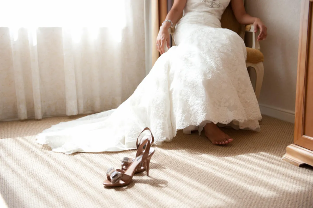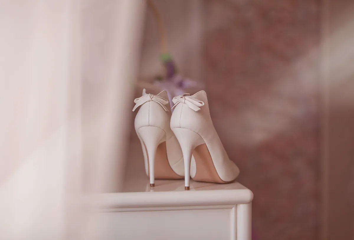 بينما تختار العروس الجريئة دائمًا اطلالة لافتة تجذب الأنظار، كحذاء Gianvito Rossi جيفيانتو روسي باللون النيود اللامع، الذي يناسب فستانكِ بدرجة الأوف وايت.