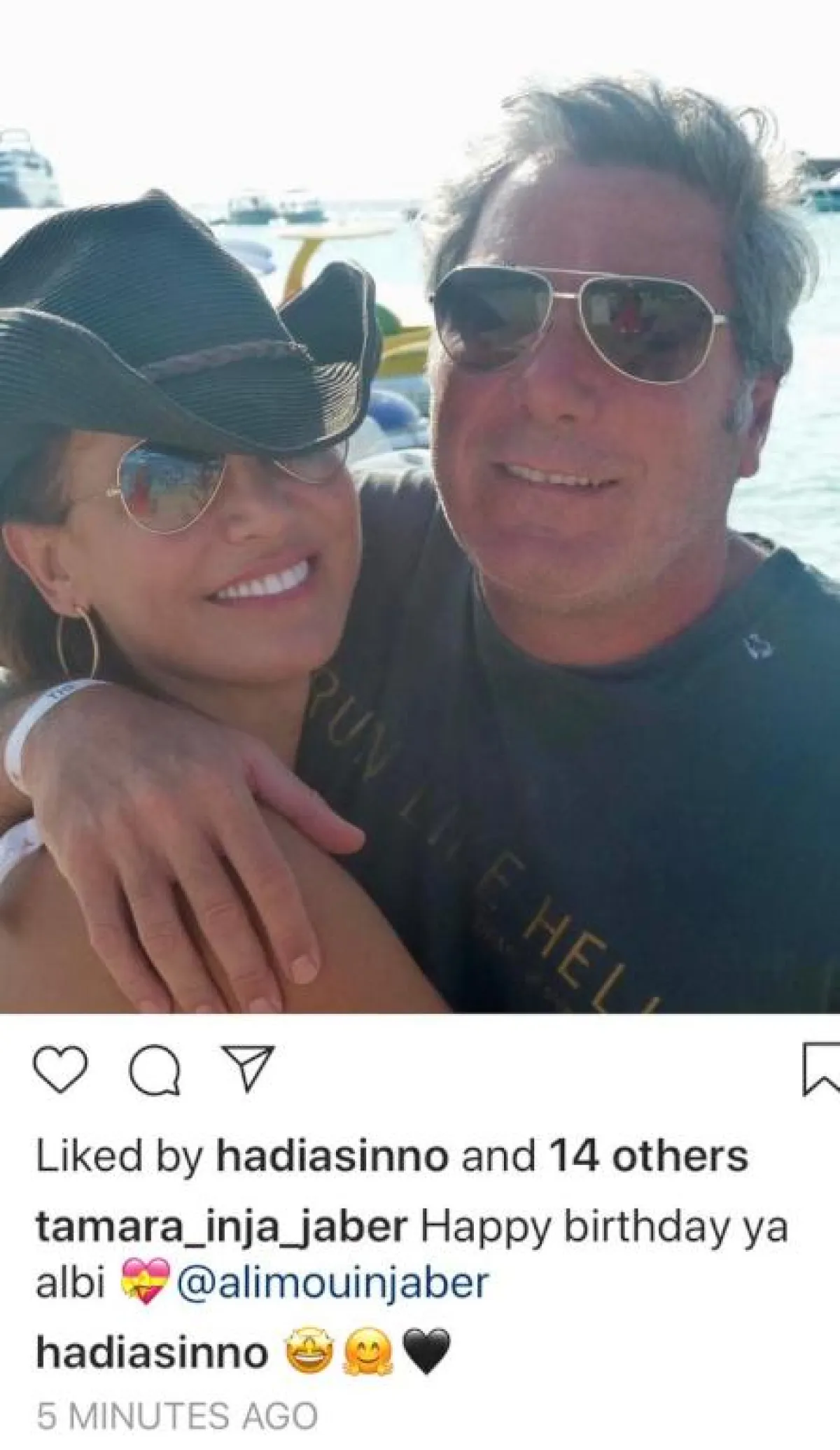 كما نشر علي جابر صورة تجمعه بزوجته تمارا التي هنأته أيضاً بعيد ميلاده.