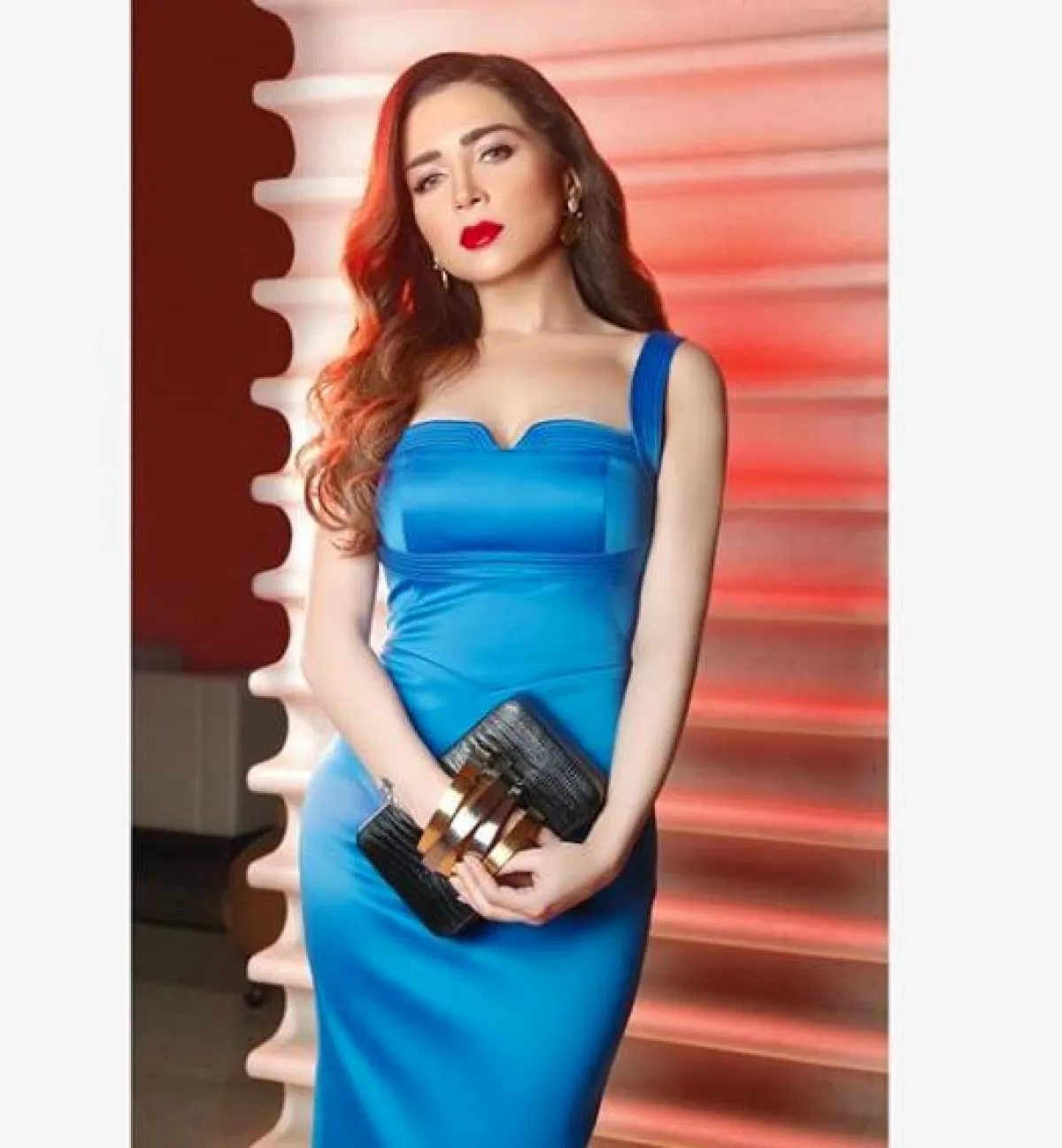 الفساتين الميدي هي الخيار الأكثر شيوعًا، وستضمن لكِ اطلالة أنيقة في العيد بالتأكيد، لكن اختاريها بلون لافت كما فعلت مي عز الدين حين تألقت بالأزرق، وقد نسقت مع اللوك حقيبة يد بتصميم مبتكر.